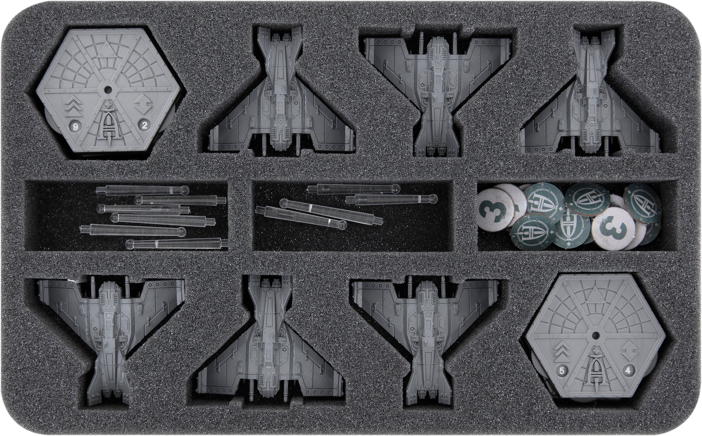 Nella cupa oscurità del futuro, c'è solo la guerra. Difendete l'Imperium sulla terra, sul mare, nello spazio e nell'aria. I piloti della Marina imperiale proteggono l'umanità ogni giorno di nuovo. Con manovre audaci, una precisione ineguagliabile e una buona dose di eroismo, sfidano gli Xenos invasori. Con questa borsa Feldherr MEDIUM e i vassoi di schiuma abbinati, i vostri eroi dell'aria arriveranno sani e salvi al tavolo da gioco.