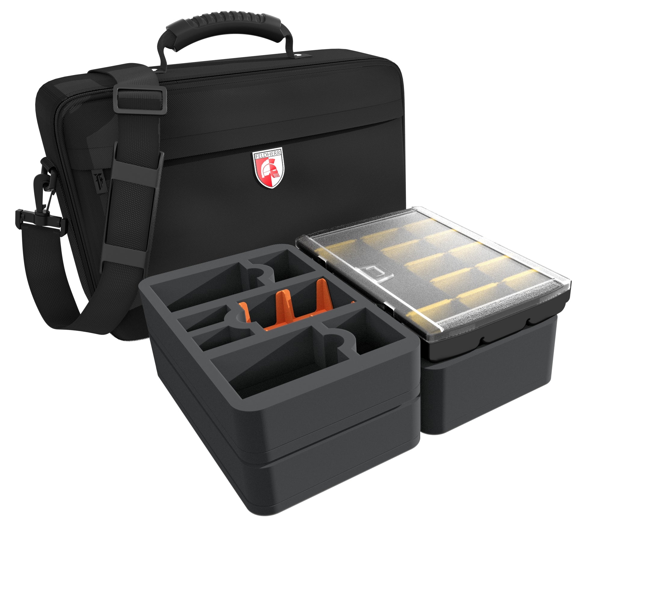 La comoda borsa MEDIUM è realizzata in materiale particolarmente resistente. Inoltre, i pannelli laterali imbottiti e il fondo rinforzato assicurano che le tue miniature siano protette in modo ottimale dalle influenze esterne anche durante il trasporto in auto o in treno. Oltre al grande scomparto principale, la borsa ha anche una tasca più piccola con una cerniera sul davanti. Qui è possibile riporre opuscoli e altri piccoli pezzi.