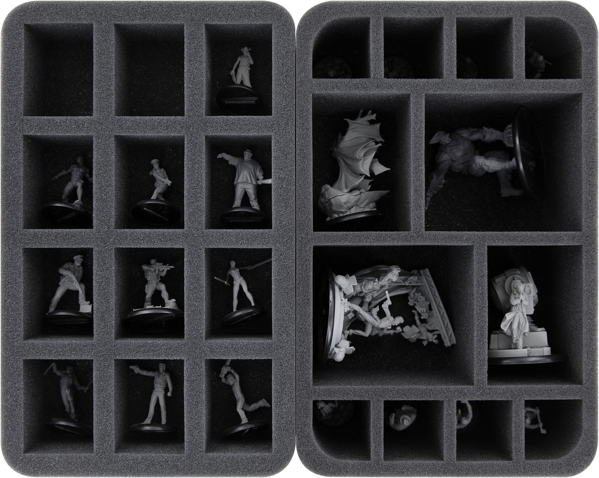 Grazie al taglio su misura, le miniature stanno strette nei loro scomparti. Anche quando vengono trasportate sui corpi dei nemici sconfitti, le miniature non scivolano e rimangono al loro posto. La morbida schiuma a pori fini protegge i dettagli intricati dalla rottura e i colori dei tuoi modelli colorati da graffi e abrasioni della vernice.