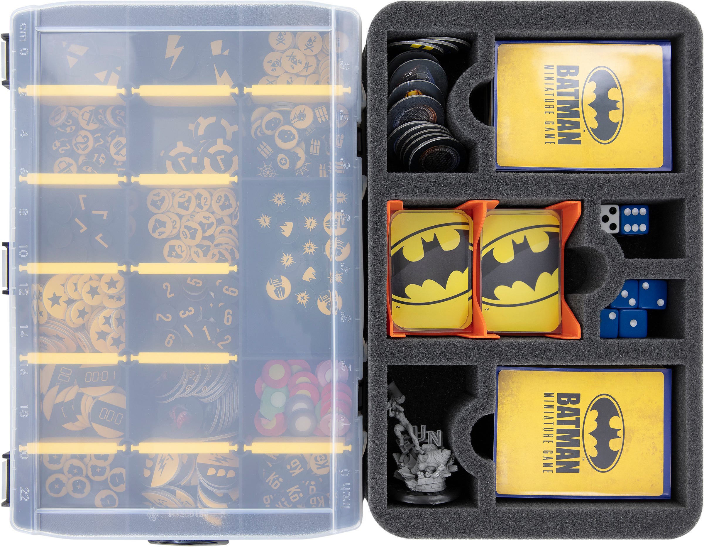 Abbiamo incluso due inserti Half-Size per proteggere le tue miniature nella borsa. Che Batman incroci le lame con Harley Quinn o con un membro della Corte dei Gufi, ogni miniatura avrà uno scomparto adatto.
