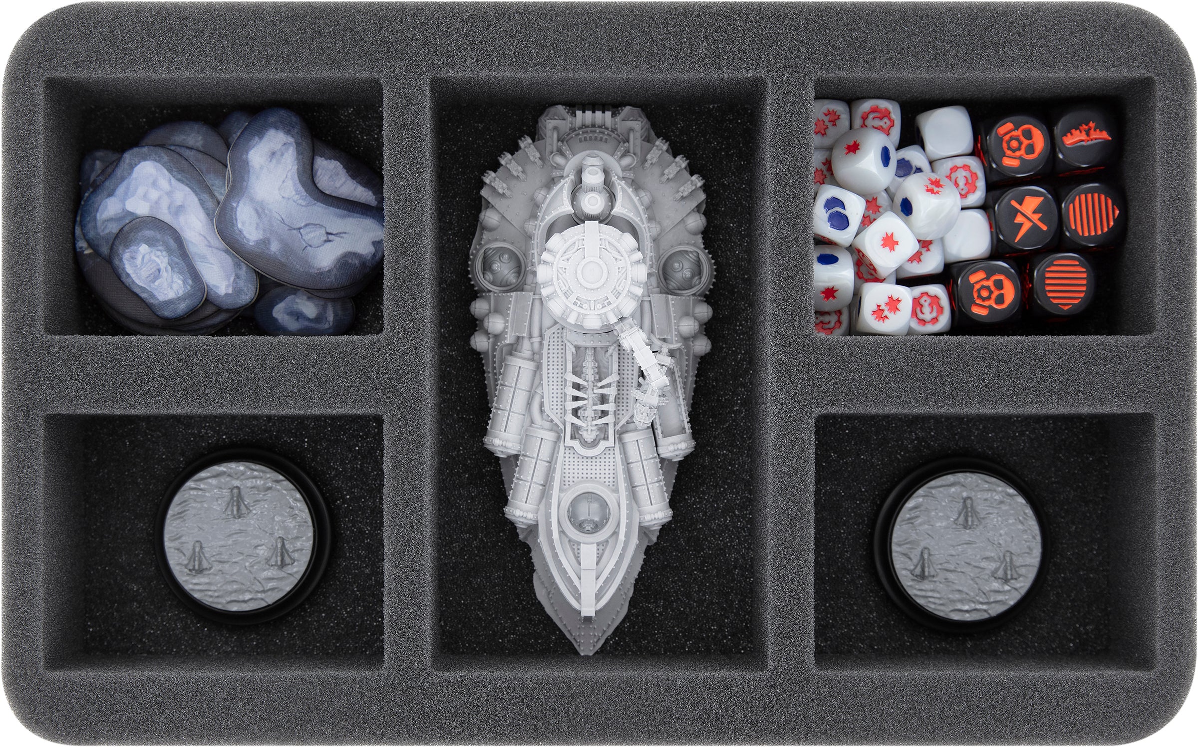- 1 vassoio in schiuma Half-Size con 5 scomparti per esempio una nave di controllo di classe Cartesio, una nave generatrice di classe Ipazia o una corazzata di classe Borodino e materiale di gioco (HS050A089)