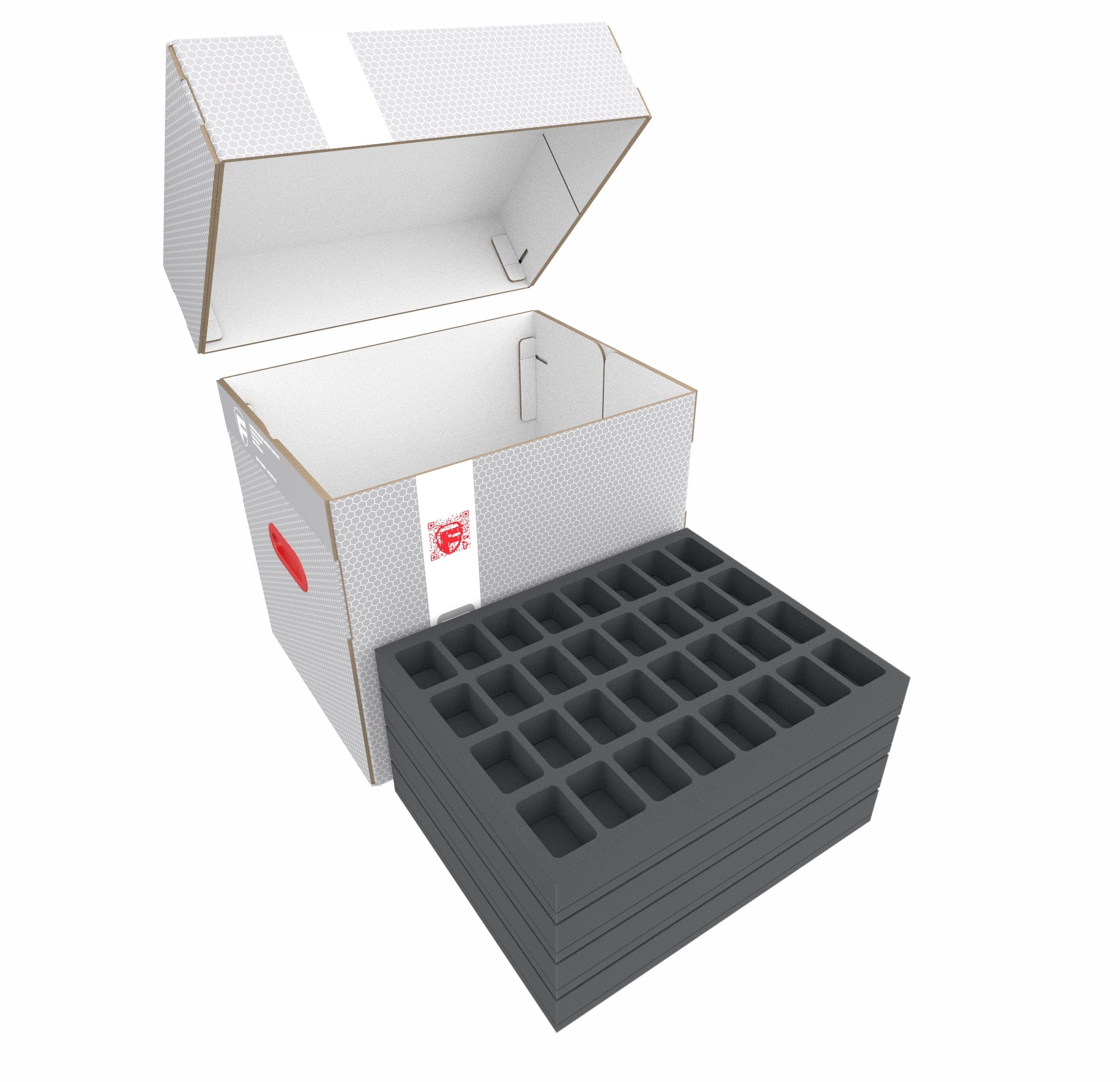 - Spaziosa scatola di cartone per vassoi di schiuma Feldherr Half-Size e Full-Size fino a 310 mm di altezza totale - perfetta per Warhammer di grandi dimensioni: The Old World - Empire of Man e macchine da guerra.