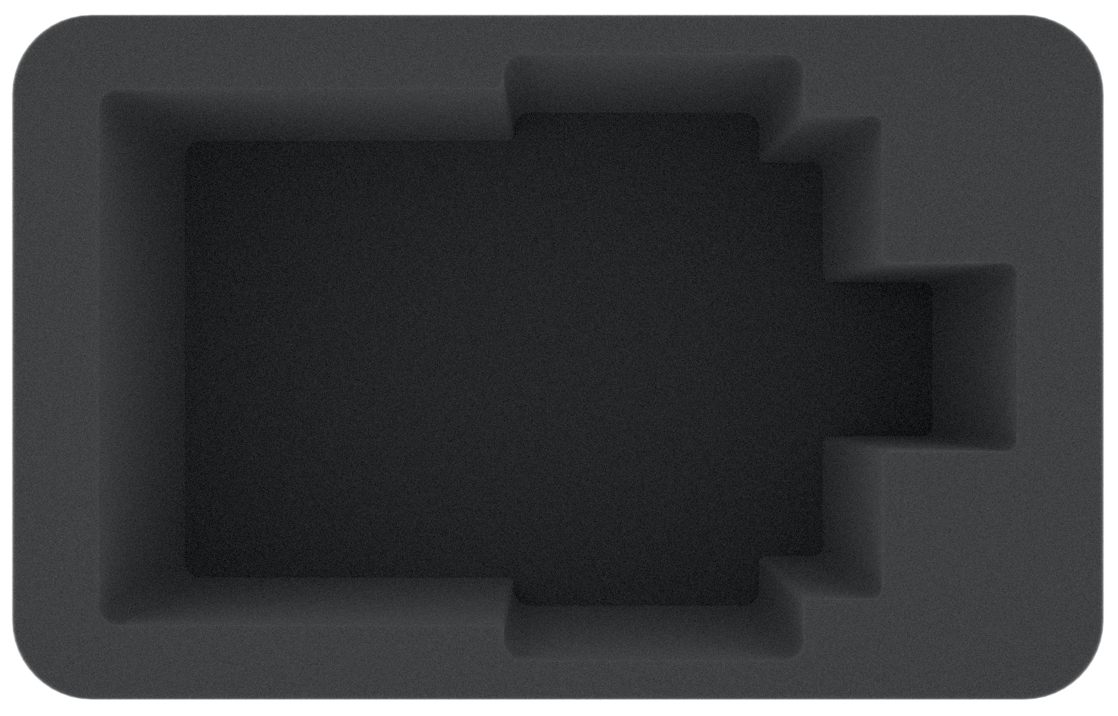 L'Half-Size Vassoio per schuma ha le seguenti dimensioni: 275 mm x 172 mm x 95 mm di altezza totale (105 mm di altezza utile + 10 mm di base in schiuma).