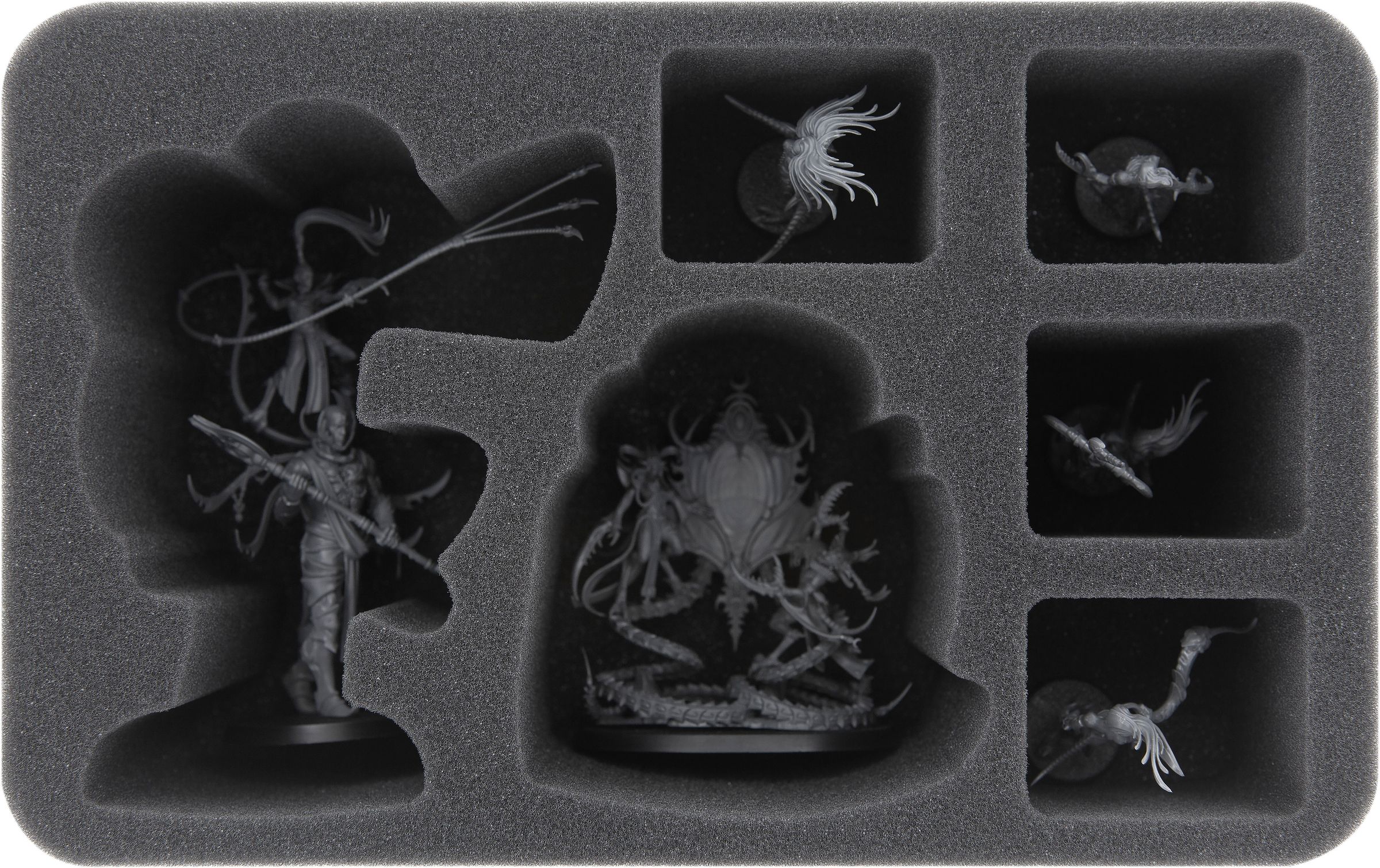 Come si addice ai demoni degli Slaanesh, le loro miniature sono costituite da innumerevoli dettagli in filigrana. In modo che arrivino intatti al tavolo da gioco, è possibile ottenere qui il vassoio di schiuma Feldherr adatto.