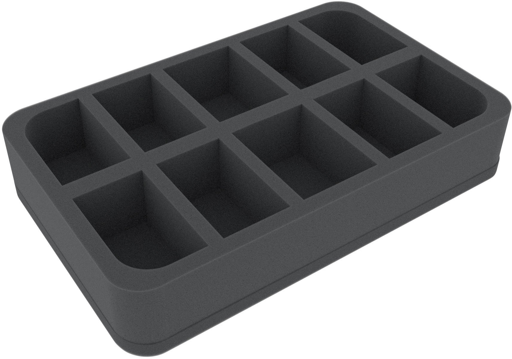 Su questo vassoio di schiuma Feldherr hai spazio per un massimo di 10 miniature del tuo esercito. L'inserto è particolarmente adatto per riporre lo Scinari Loreseeker, Scinari Calligrave, Scinari Cathallar e modelli di dimensioni simili.