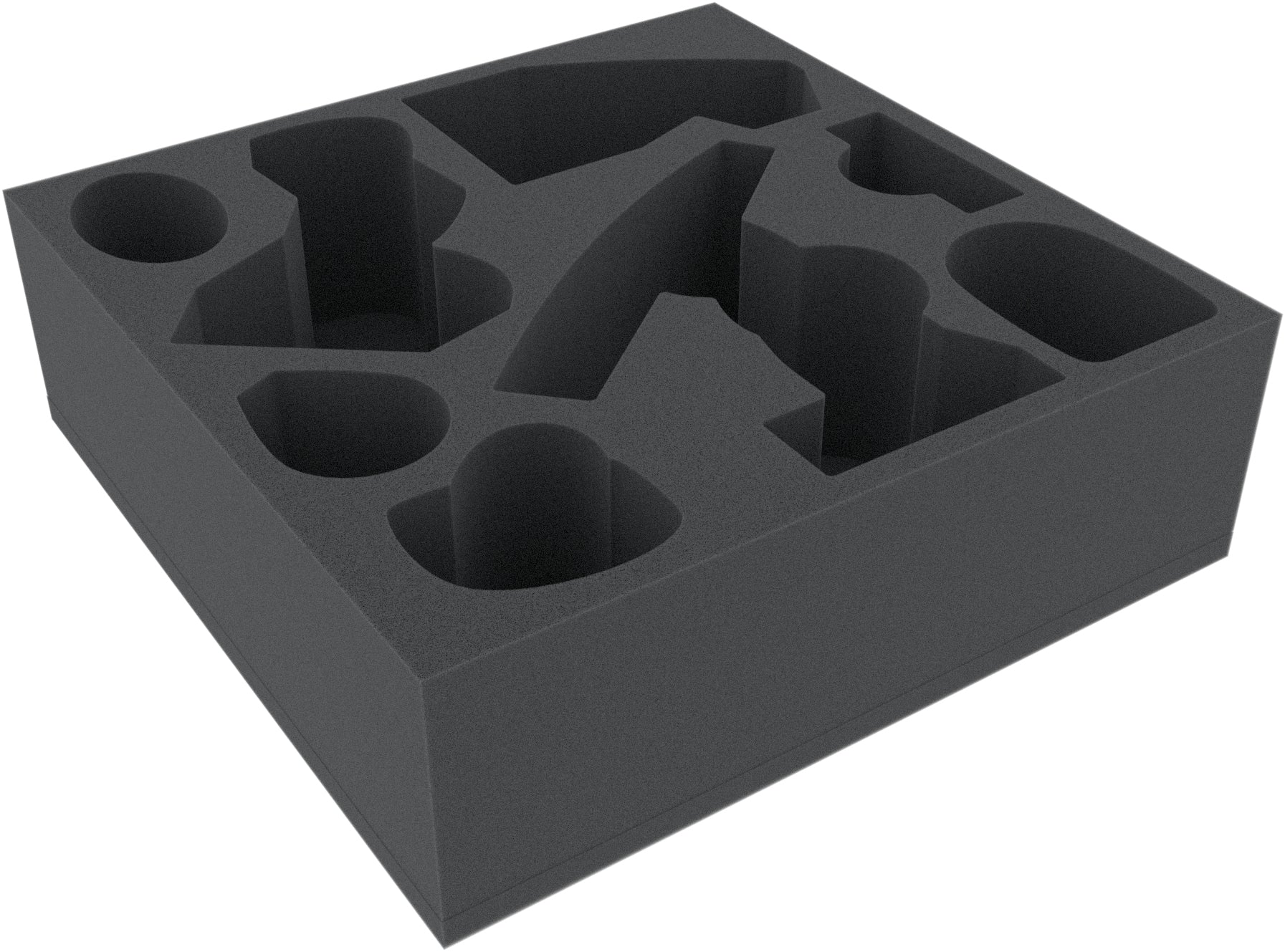 - Il vassoio di schiuma ha le dimensioni: 285 mm x 285 mm x 285 mm x 90 mm di altezza totale (80 mm di altezza utile + 10 mm di base in schiuma)