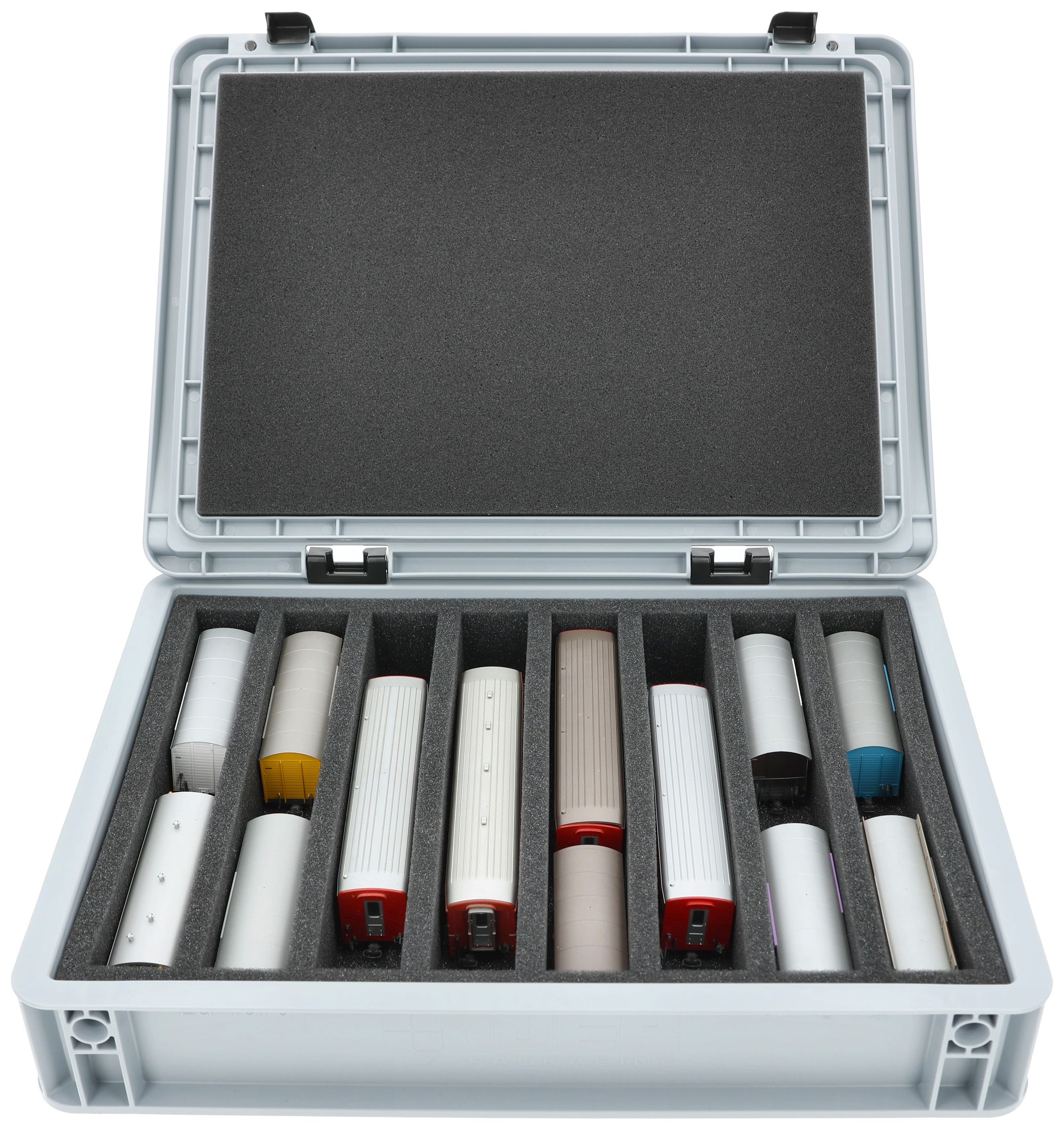 - 8 compartments - foam insert for upright storage of locomotives, wagons and vehicles