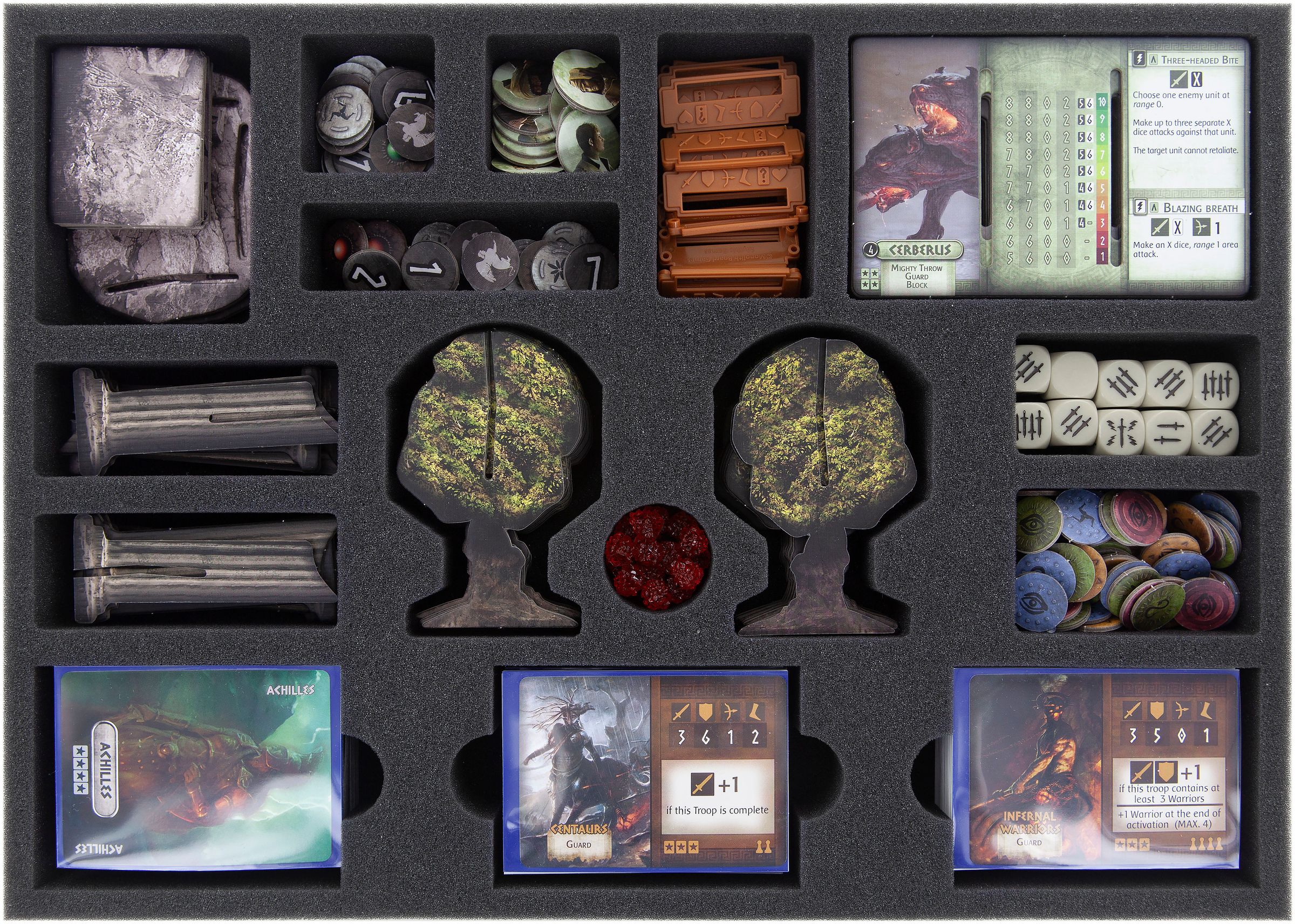 L'inserto in schiuma si inserisce perfettamente nell'originale Mythics Battles: Scatola di gioco da tavolo Pantheon.