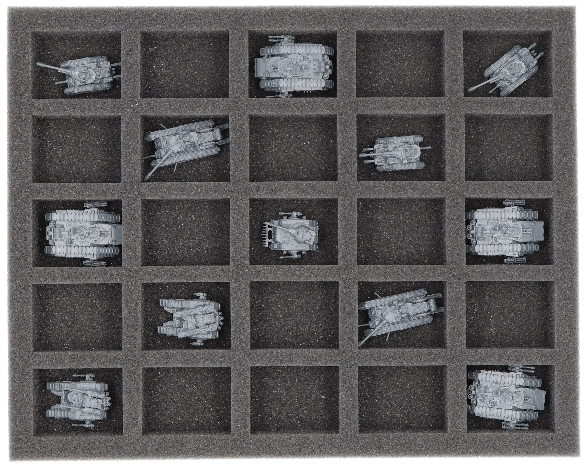 Questo Feldherr Vassoio per schuma offre spazio per un massimo di 25 miniature del vostro esercito, perfettamente adatto a contenere carri armati come Spartan Assault Tank, Sicaran, Predator, Leman Russ e Malcador, nonché miniature di dimensioni simili.