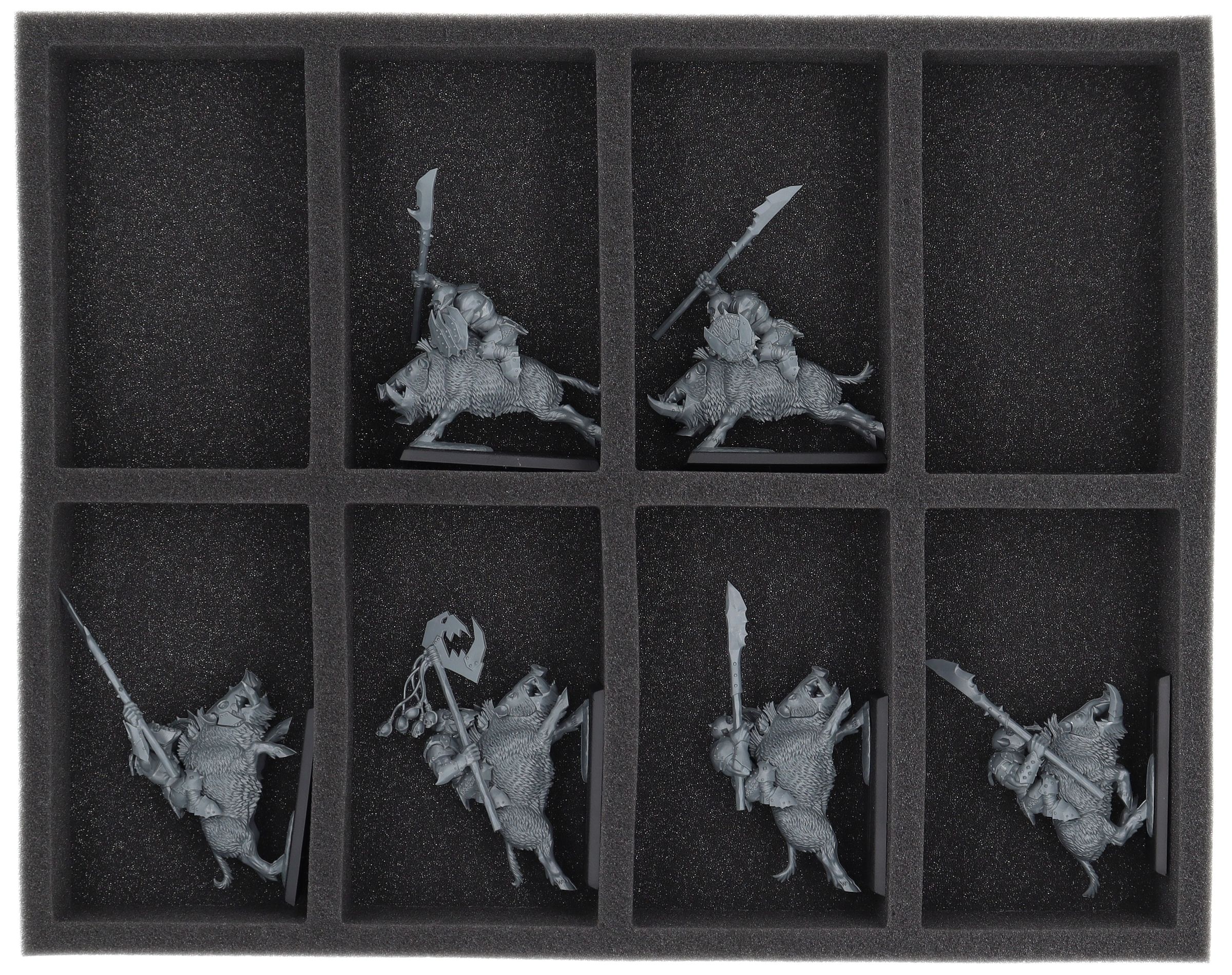 Su questo vassoio in schiuma Feldherr c'è spazio per un massimo di 8 miniature del vostro esercito. L'inserto è particolarmente adatto a contenere l'Orc Boar Boyz Mob e modelli di dimensioni simili.
