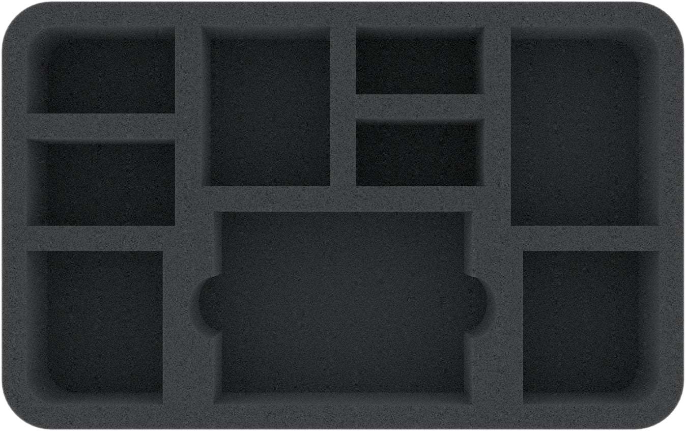 Su questo Half-Size Vassoio per schuma c'è spazio per un massimo di 8 miniature del vostro esercito. L'inserto è ideale per riporre miniature su basi diverse e per le carte.
