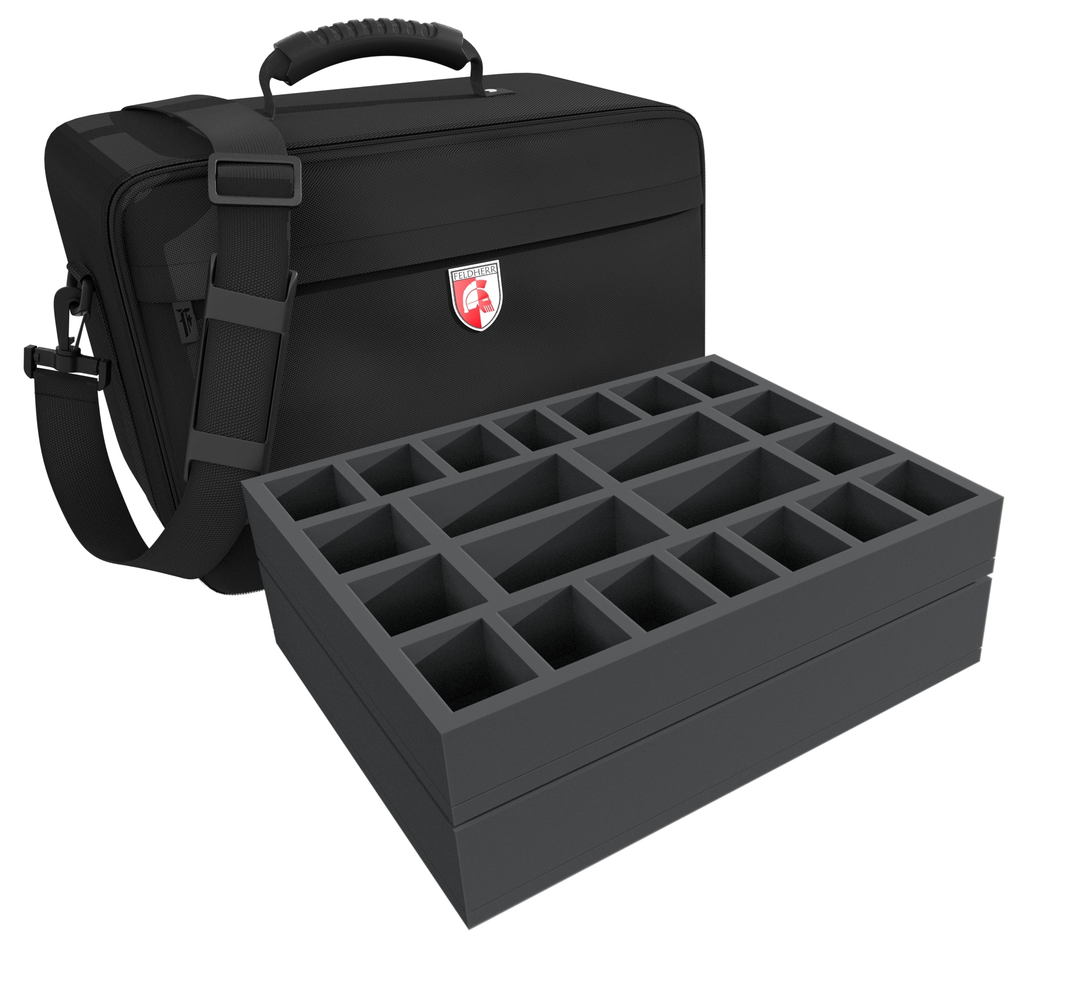 In this sturdy MAXI PLUS bag your miniatures are optimally protected. You can safely transport up to 30 warrior figures and 2 tanks to the battlefield in the custom Feldherr foam trays.