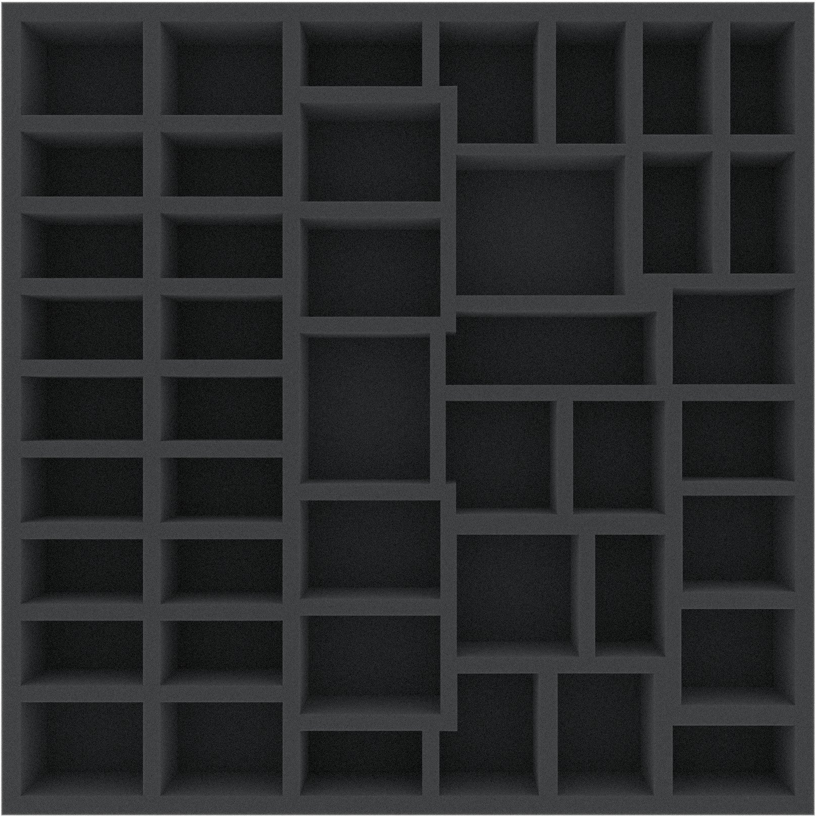 This 45 mm high foam tray is divided into 44 compartments. It is particularly suitable for the safe storage of tabletop and board game miniatures, as well as other fragile models and small parts.