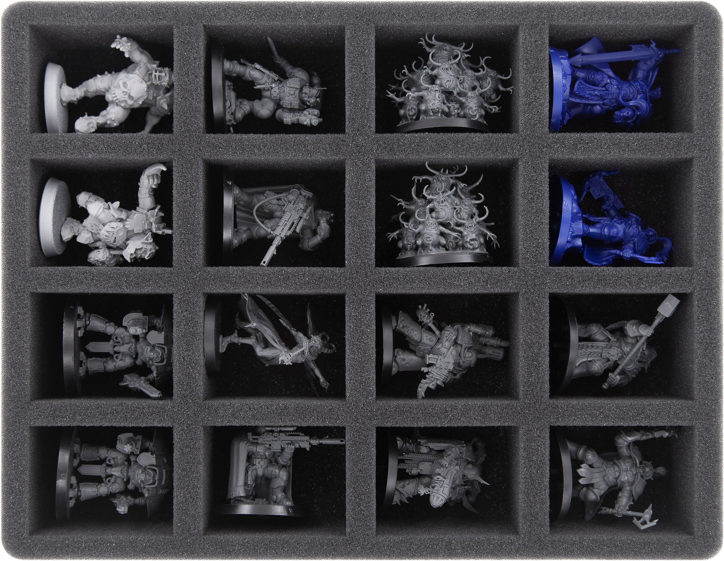 This Feldherr GWB-Size foam tray is divided into 16 compartments. It is ideal for safe storage of larger miniatures or game material.