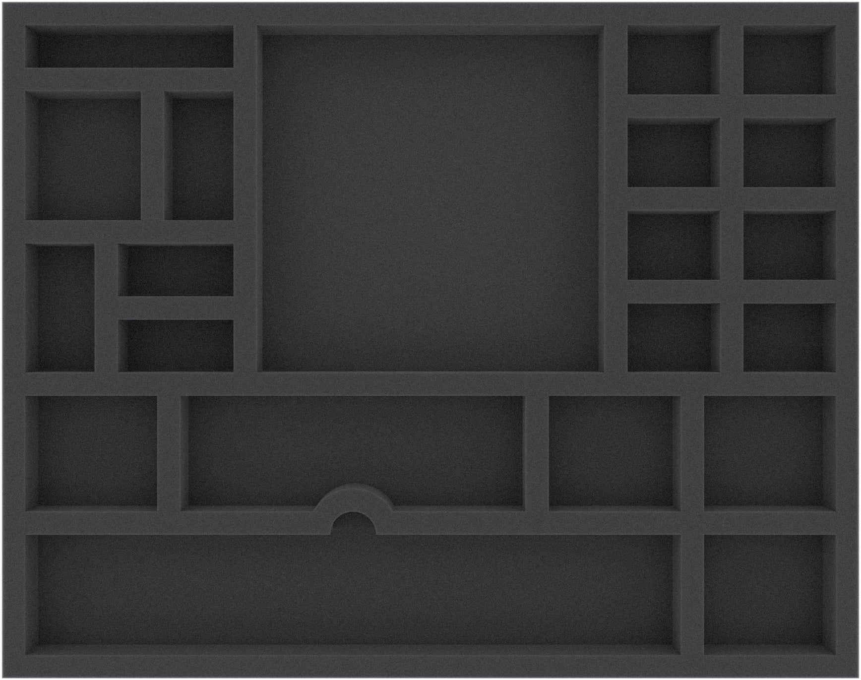 This foam tray has 21 compartments for the safe and orderly storage of the game material from the board game „U-Boot“. The tray fits exactly into the original board game box.