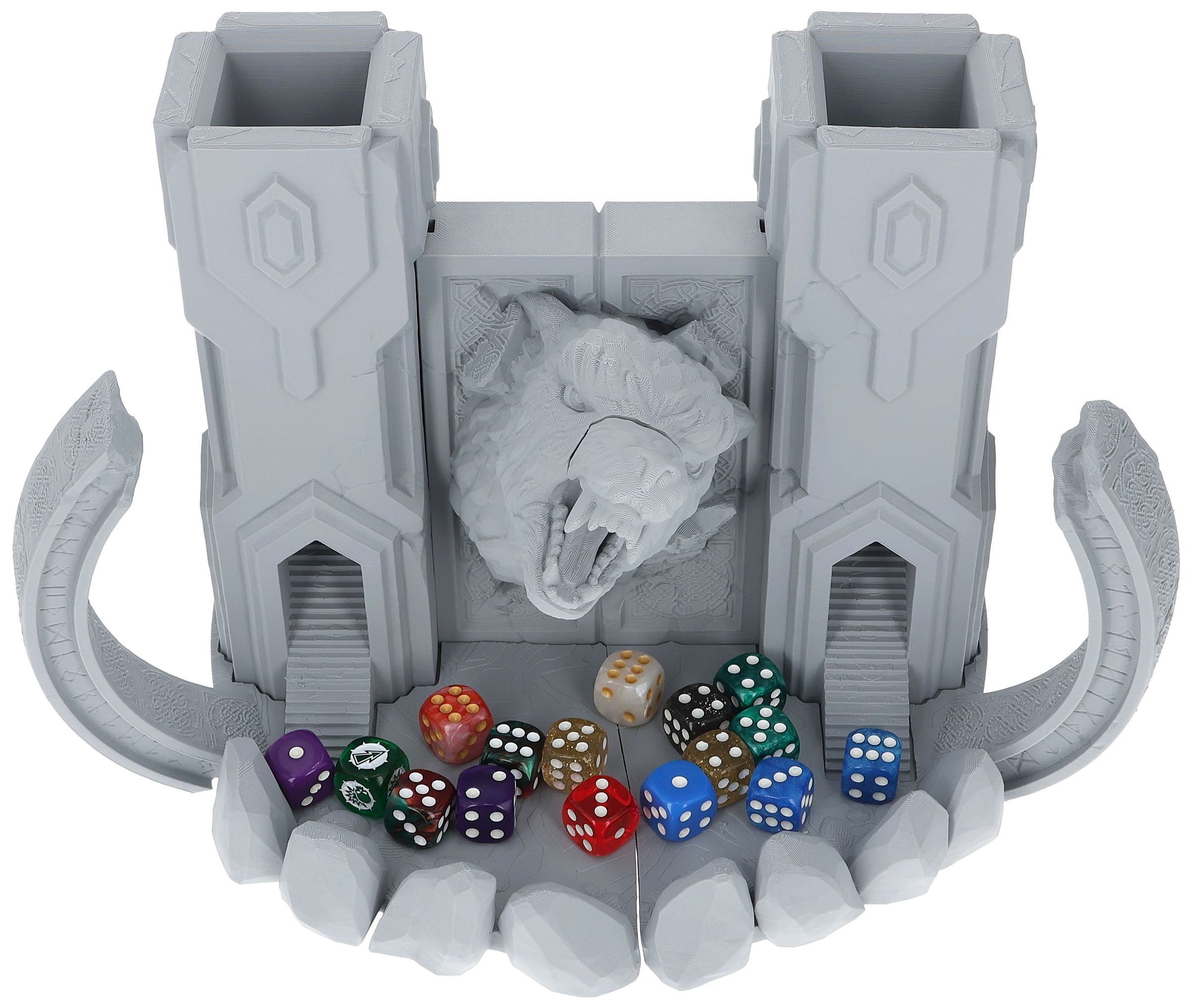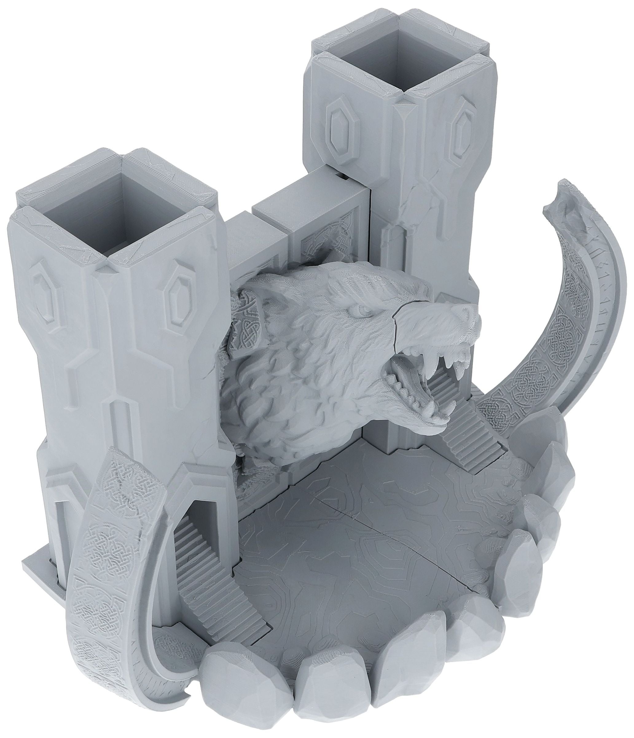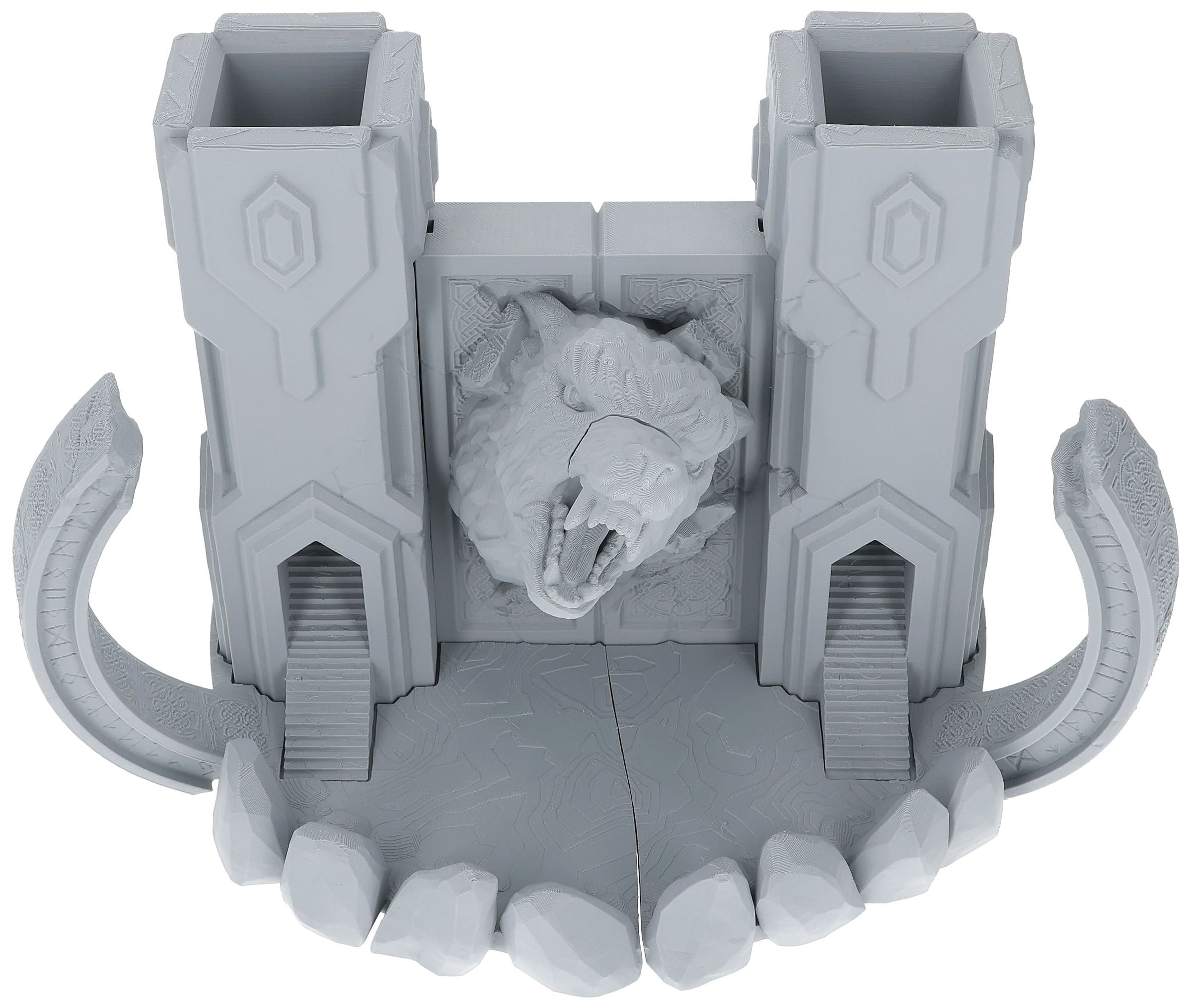 Crafted from environmentally friendly PLA and printed in Germany, this dice tower combines sustainability with high-quality craftsmanship. Whether you're playing Dungeons and Dragons, Warhammer, or any other tabletop role-playing games, The Gate to Valhalla Dice Tower enhances your gaming experience with style and efficiency. Each roll of the dice is funneled through these towering gates, adding a touch of mythic drama to your adventures.