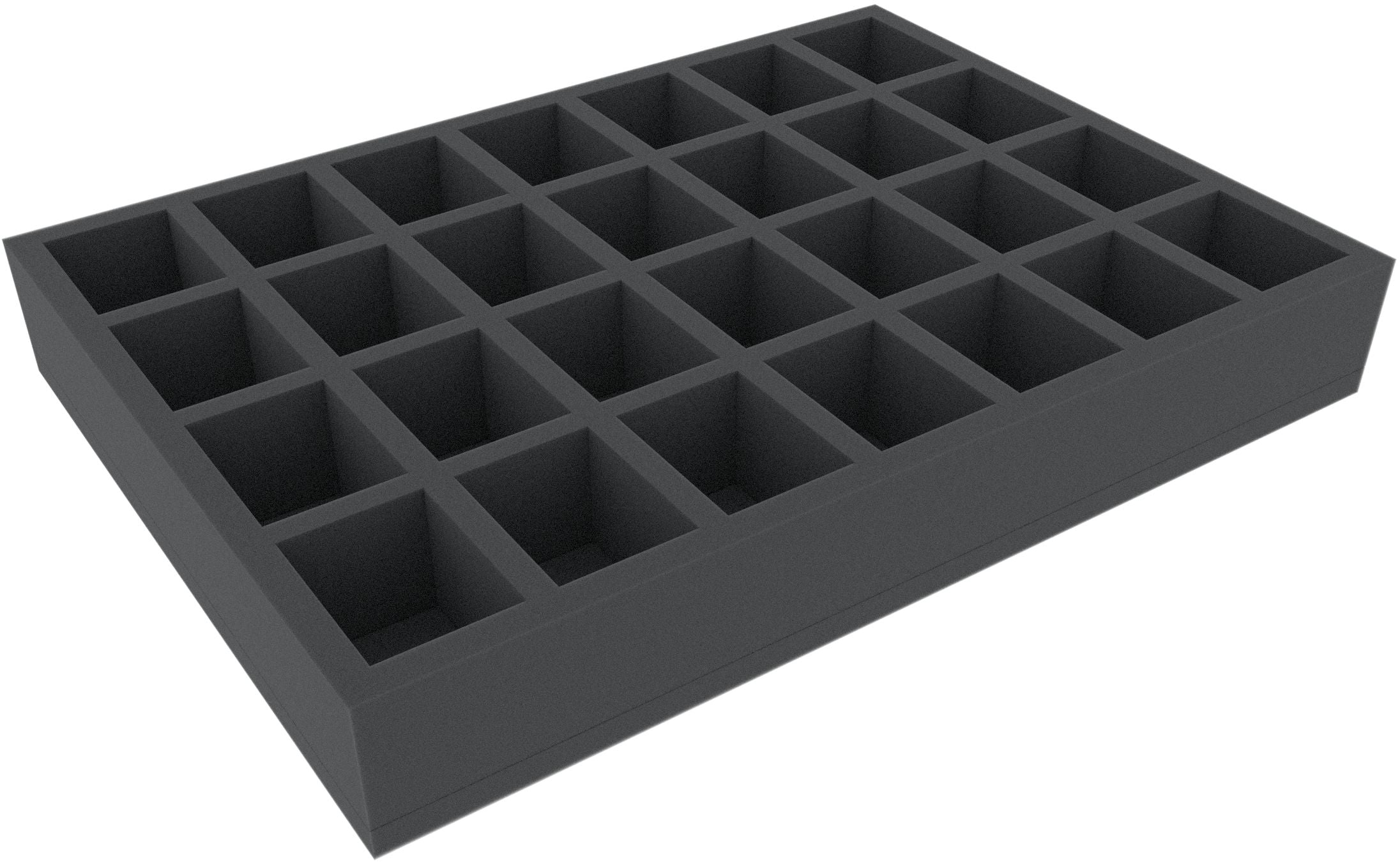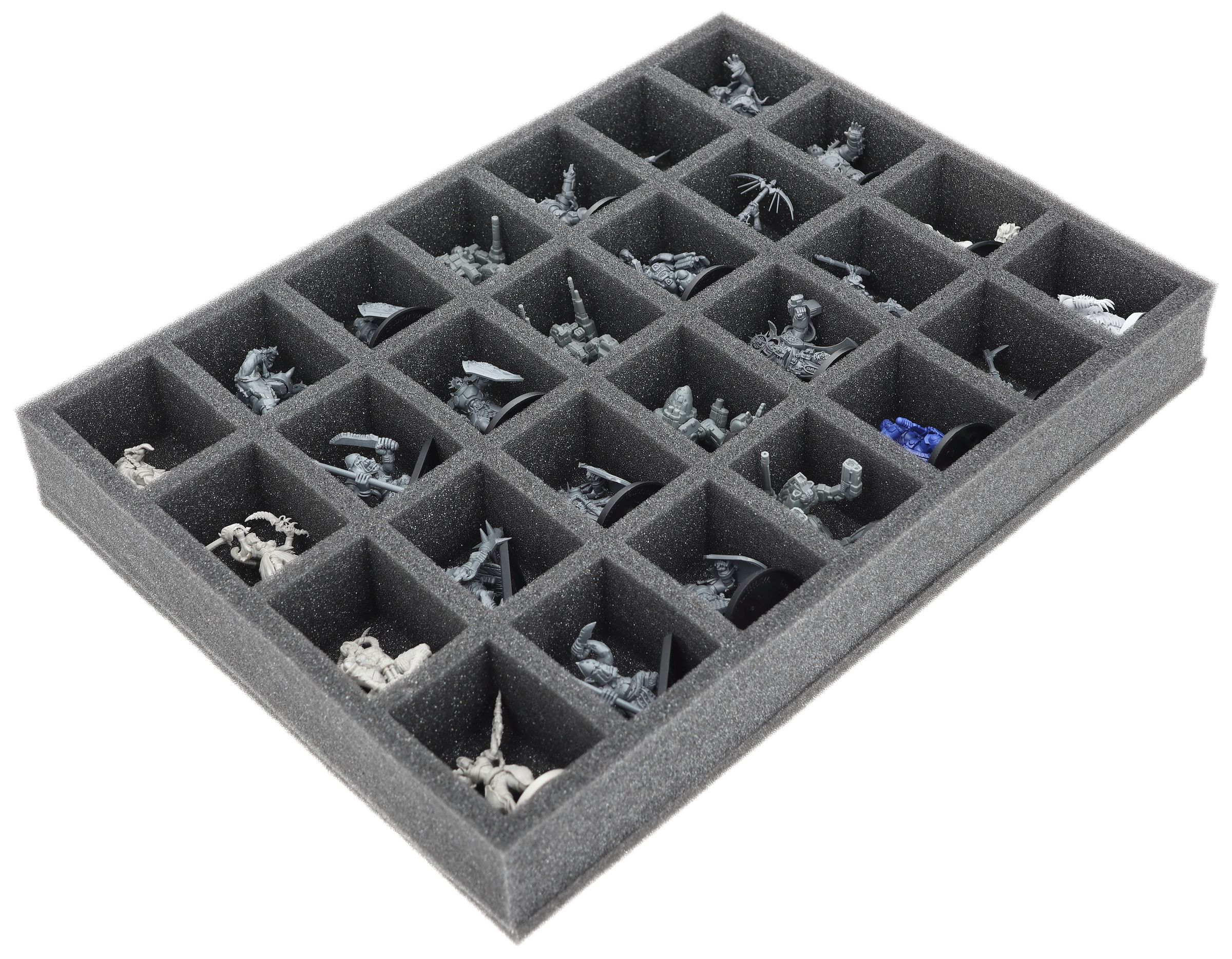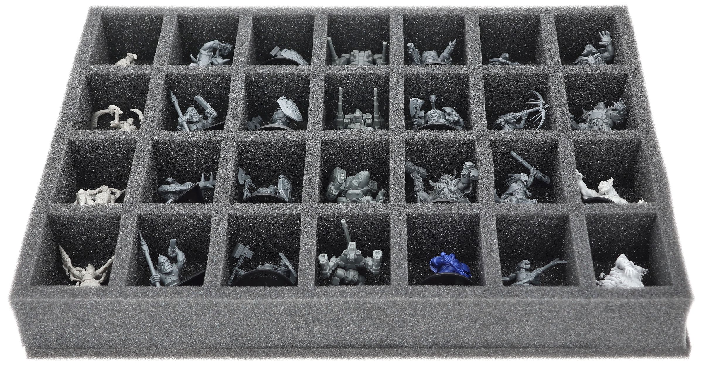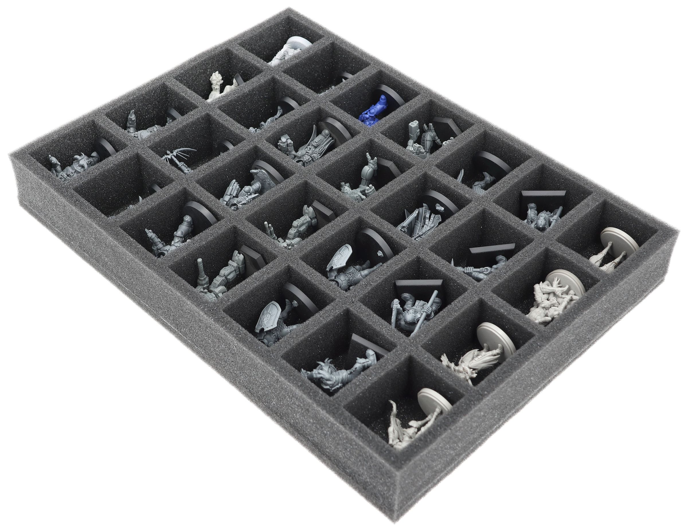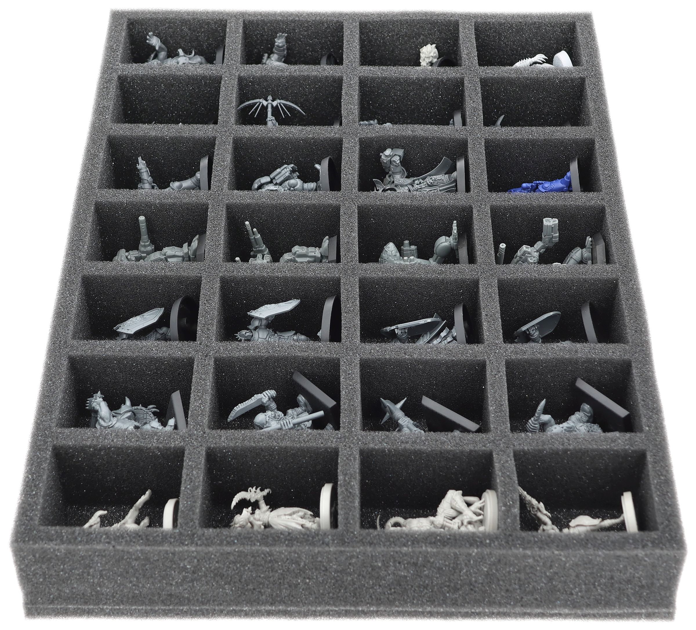This 50 mm high Feldherr foam insert offers you 28 custom-fit compartments for the safe storage and transport of miniatures from various board game and tabletop systems. Your models remain neatly sorted and reliably protected.
