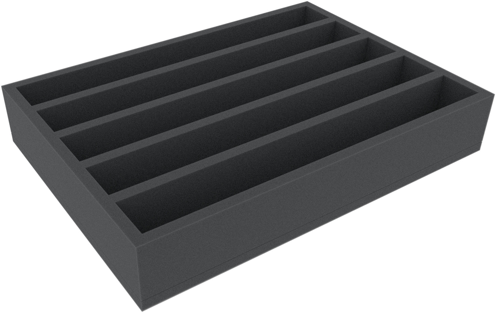 This Feldherr foam tray is divided into 5 oblong compartments.