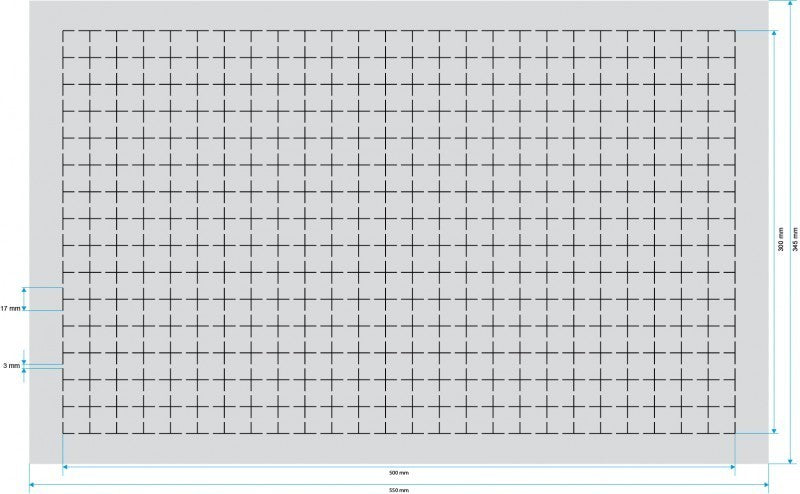 - Pre-punched grid with 20 mm x 20 mm size.