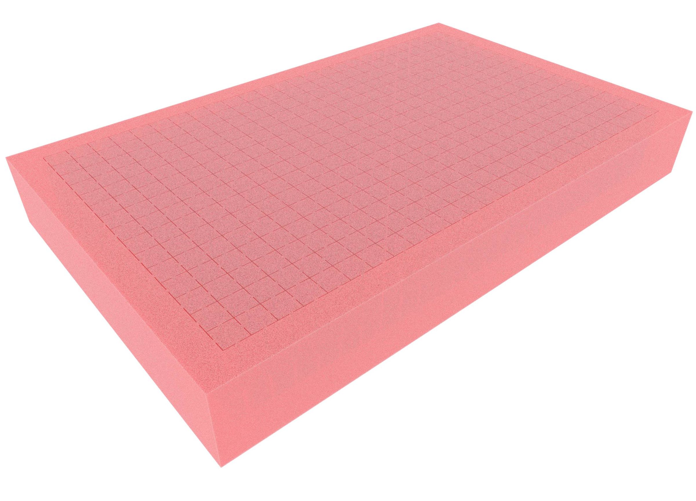 This foam is perforated with a pick and plug of 20 mm x 20 mm (25 x 15 = 375 cuboids). A circumferential border is not perforated and increases the stability of the fitted foam insert. The grid allows the tool-free adjustment of the foam inserts to your needs. The article will be delivered without base foam sheet. As a base we offer for example the articles DS010BESD or DS020BESD.