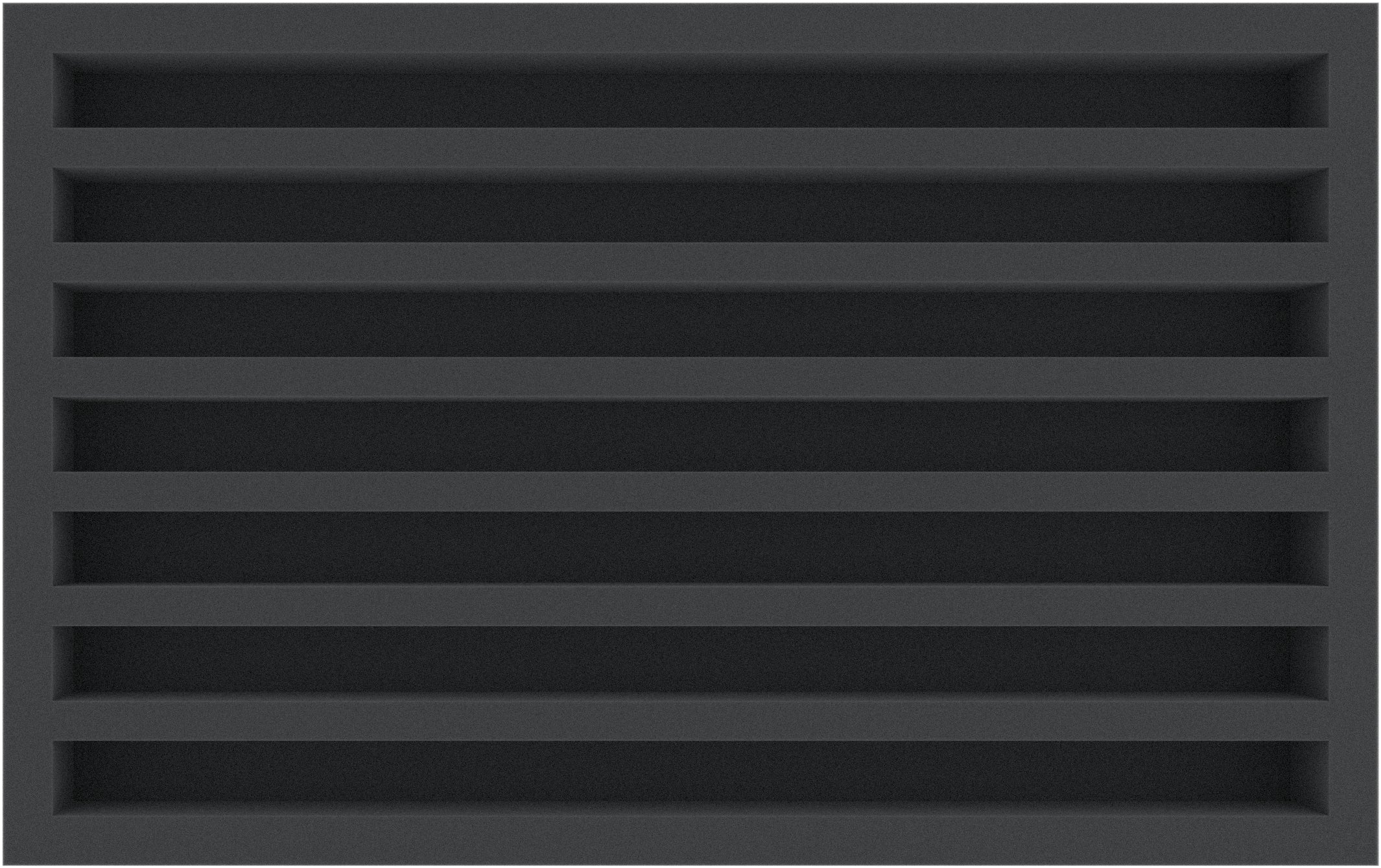 This 50 mm mm high foam tray is divided into 7 compartments. It is particularly suitable for the safe storage of tabletop and board game miniatures, as well as other fragile models and small parts.