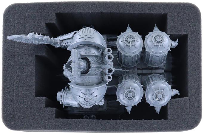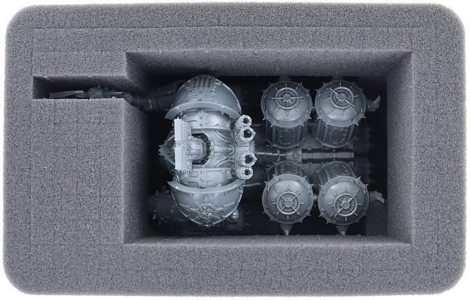 With the Feldherr Half-Size Pick & Pluck foam set, the safe transport of the elaborately designed model is no problem. Create a tailor-made foam tray in which you can bring your Khorne Lord of Skulls safely and undamaged to the gaming table and strike fear into your opponents.