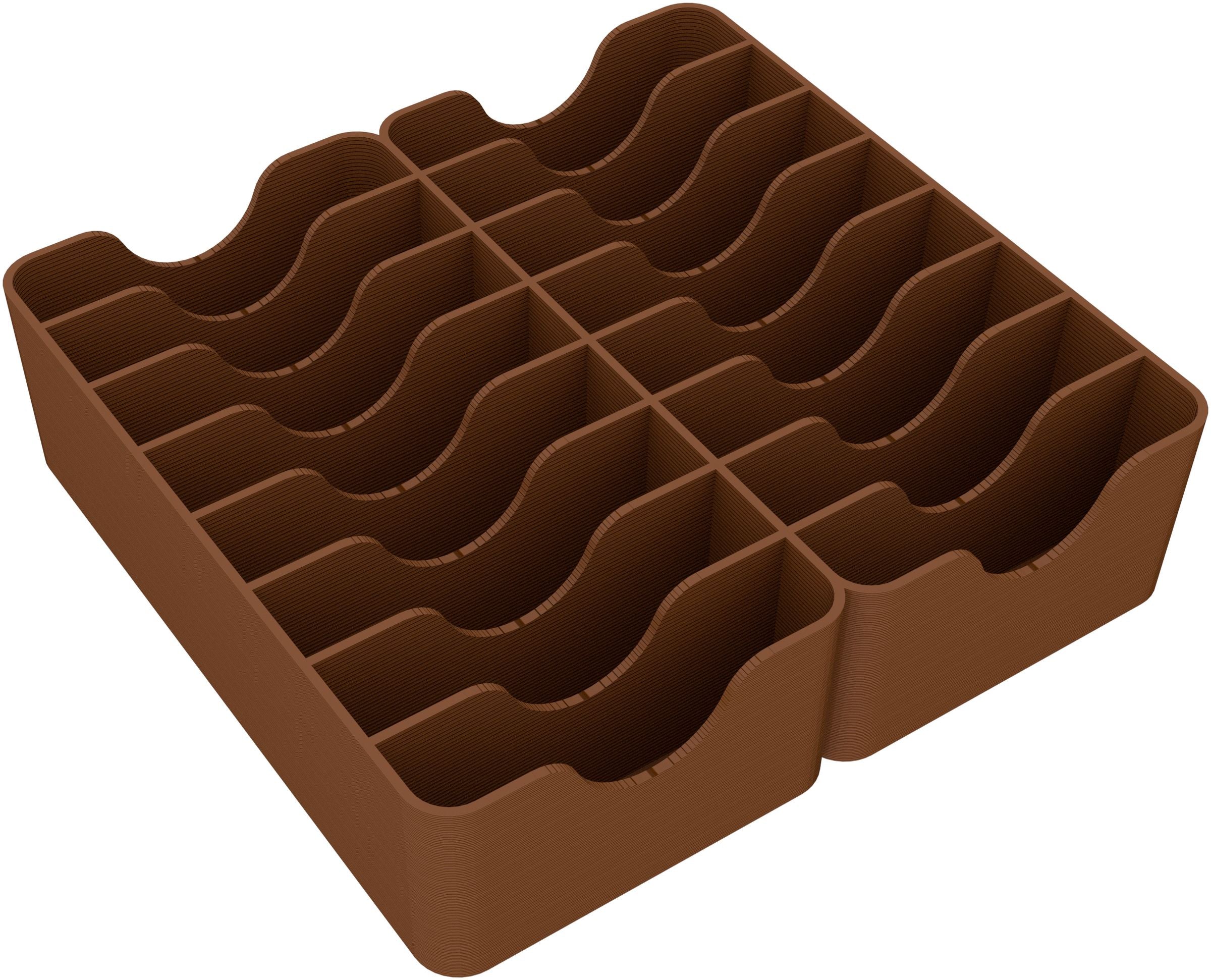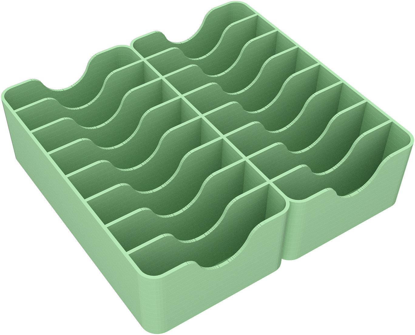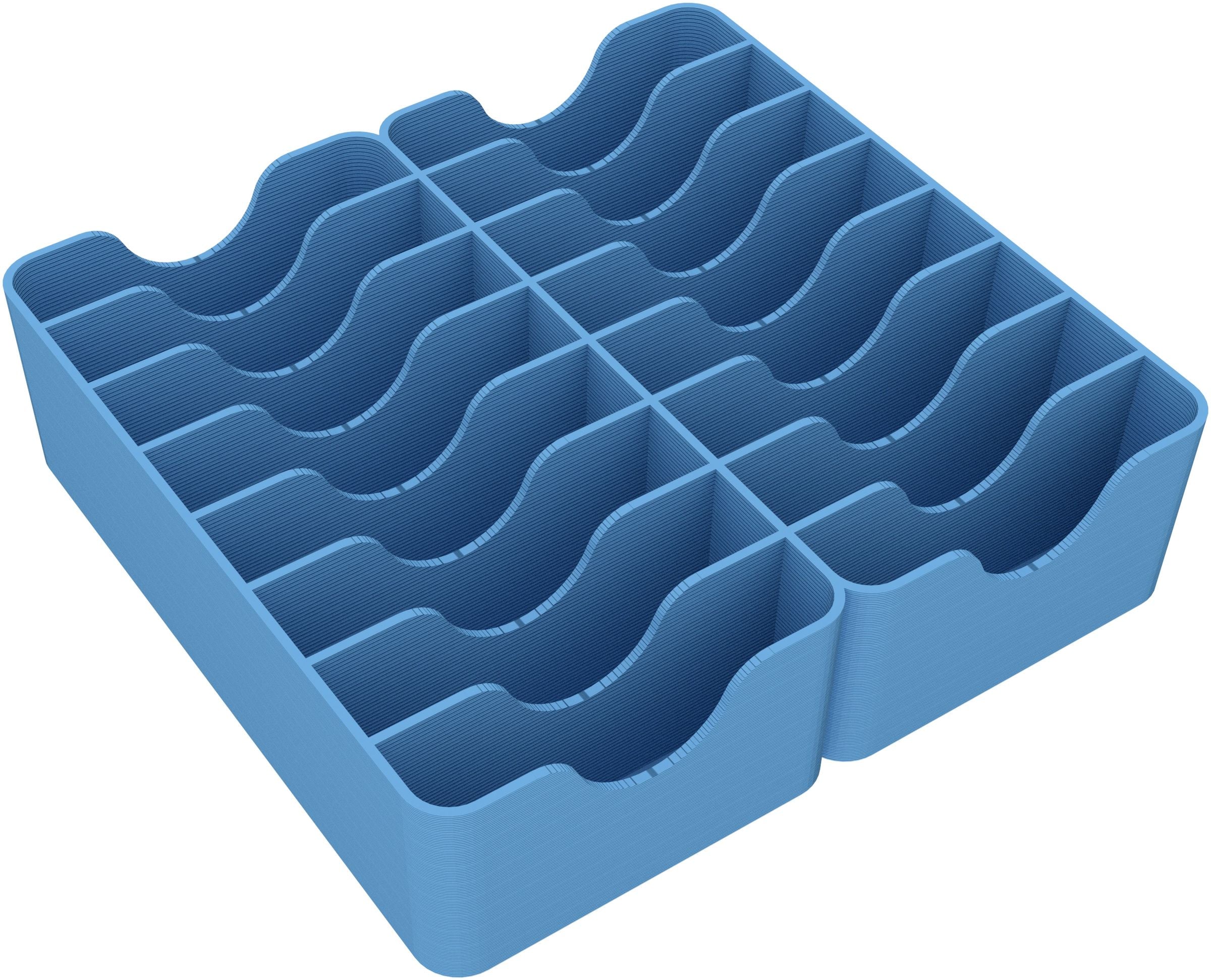 - Each of the 16 compartments has the following inner dimensions: 90 mm x 20 mm x 48 mm deep