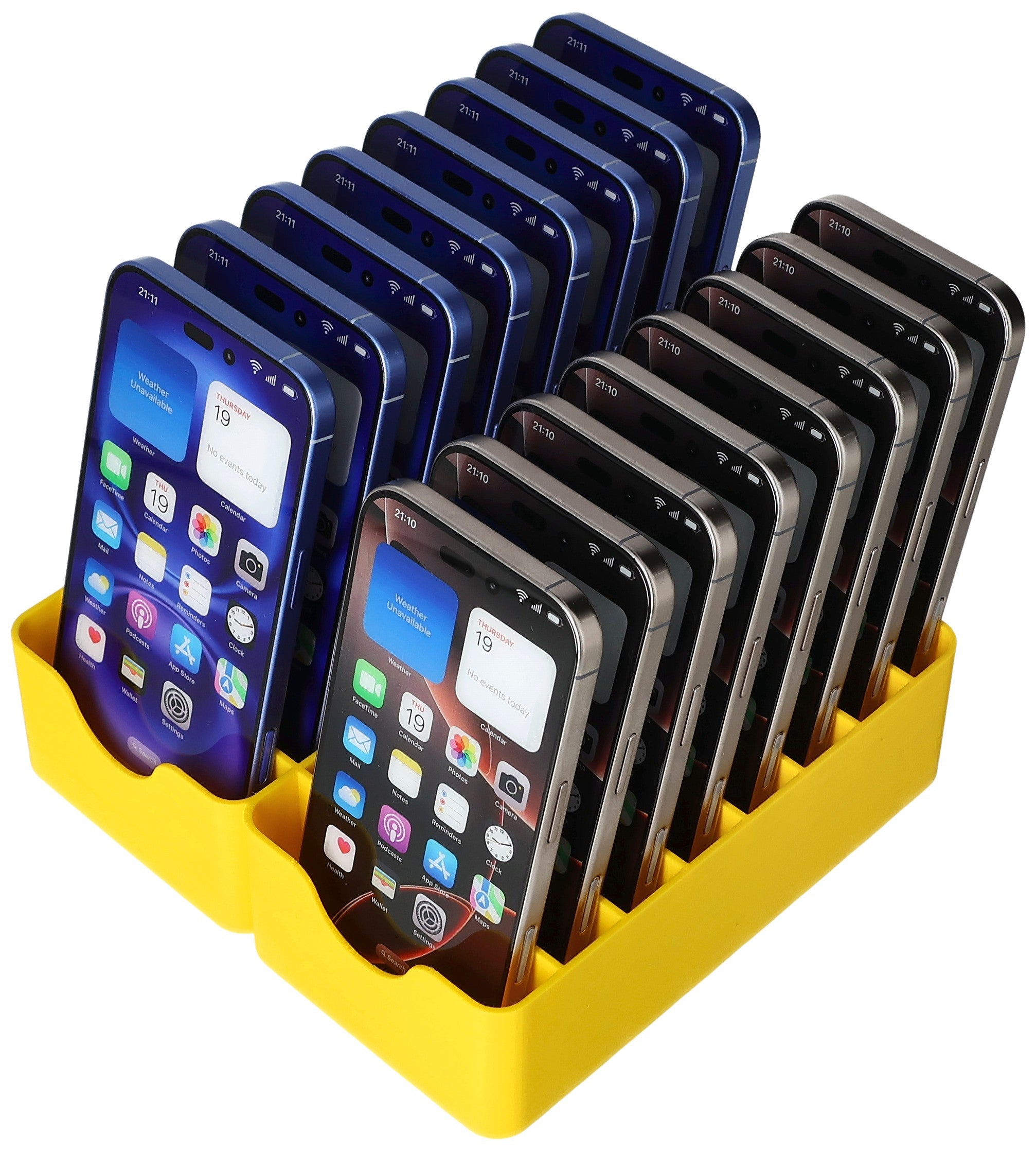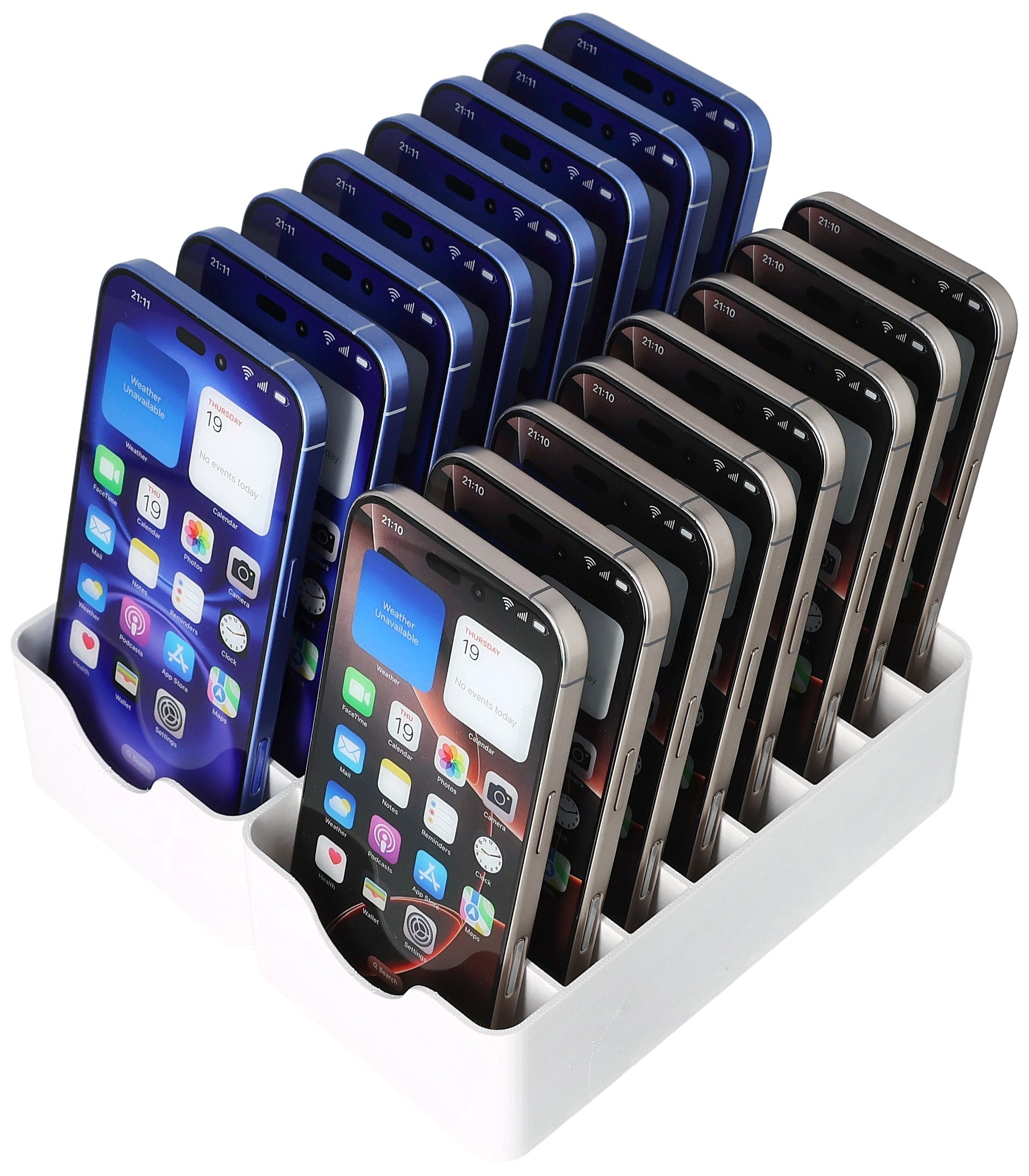 Don't worry, we have the right solution for your problem: This Feldherr smartphone parking lot offers space for up to 16 mobile phones with and without a case.