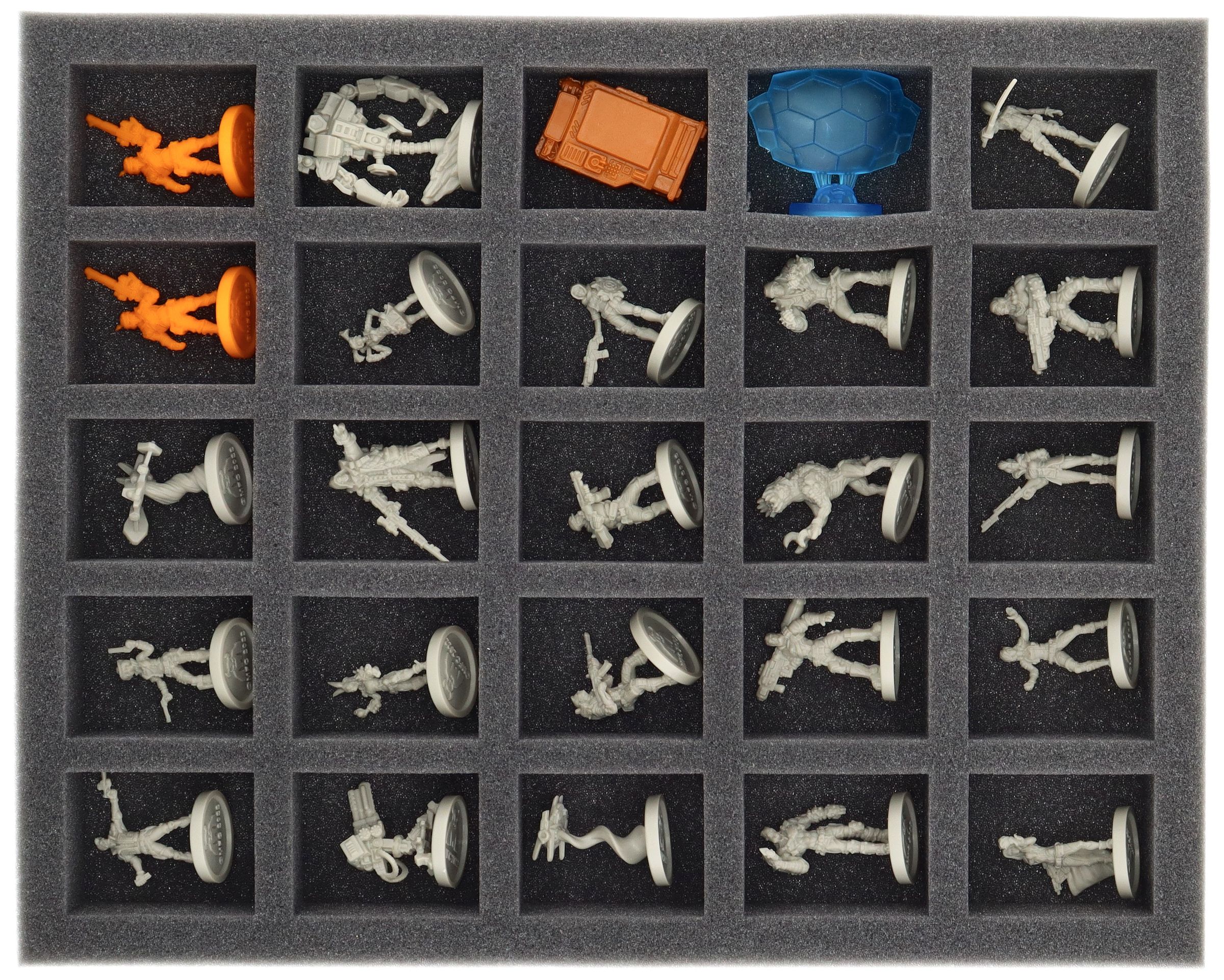 - 1 Full-Size foam tray with 25 compartments for miniatures (FSLQ040BO)