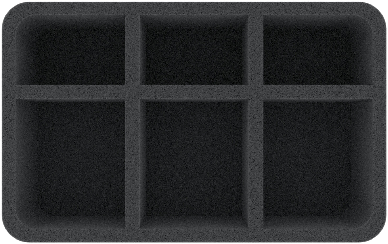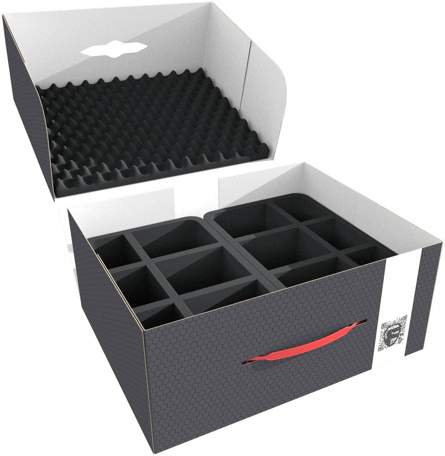 Two Half-Size foam inserts, each with six compartments, take care of your miniatures and game materials.