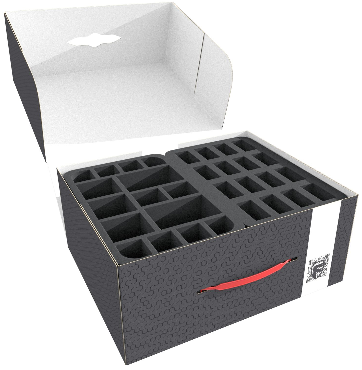 To protect your miniatures and sort your game materials, we've included 3 Half-Size foam inserts and 1 Pre-Cubed foam into the Storage Box.