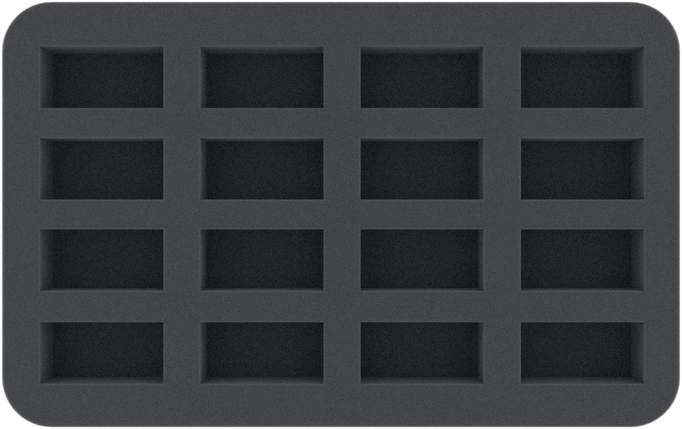 - 1 Half-Size foam tray with 16 compartments for miniatures like Small Breeds, Medium Oni and Large Oni (HS040BF05BO)
