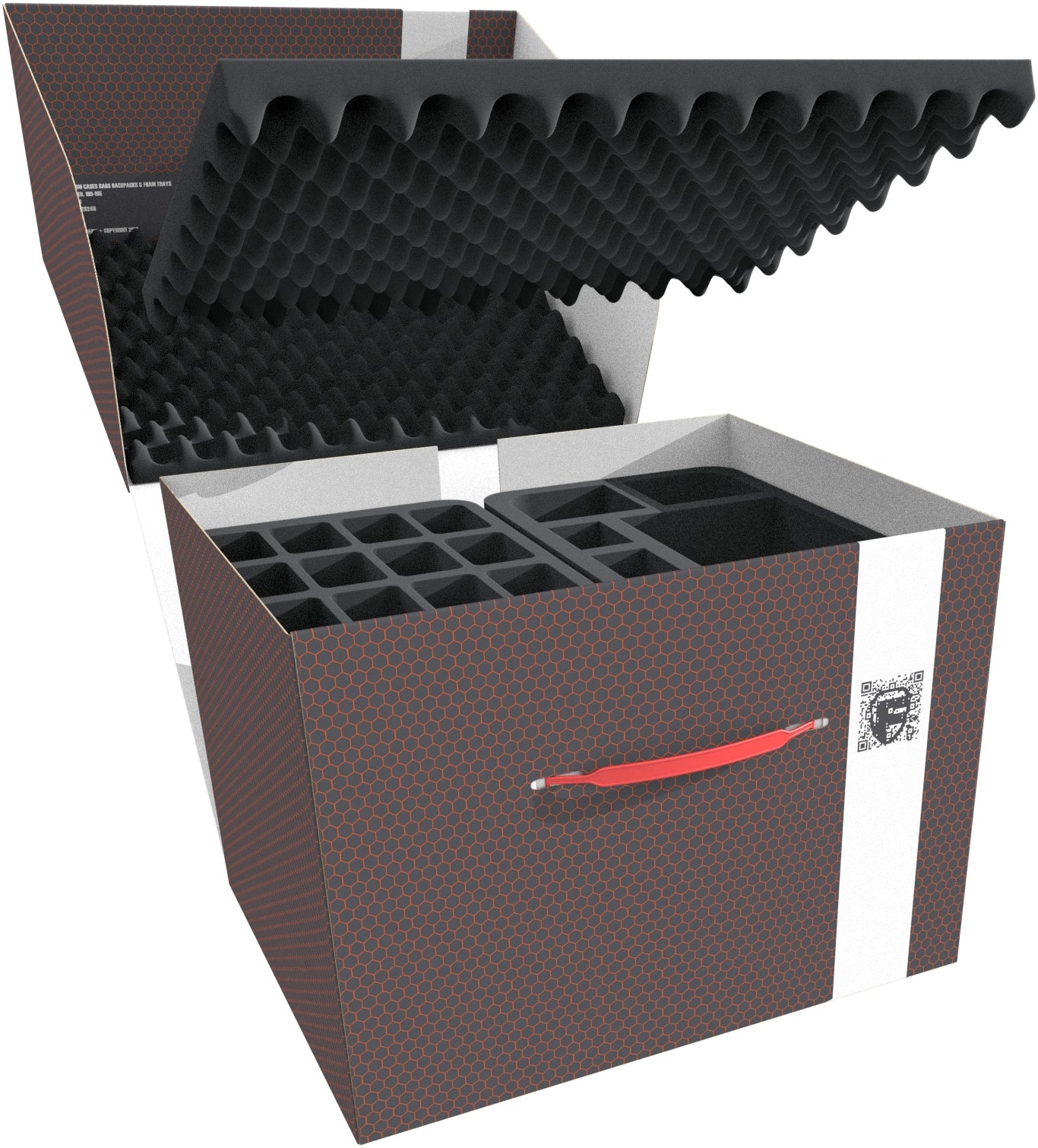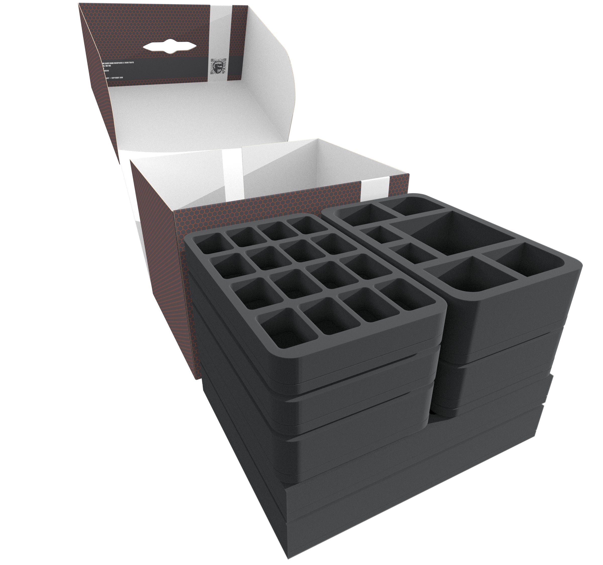 - 2 Half-Size foam trays with 16 compartments each for miniatures (HS035BF05BO)