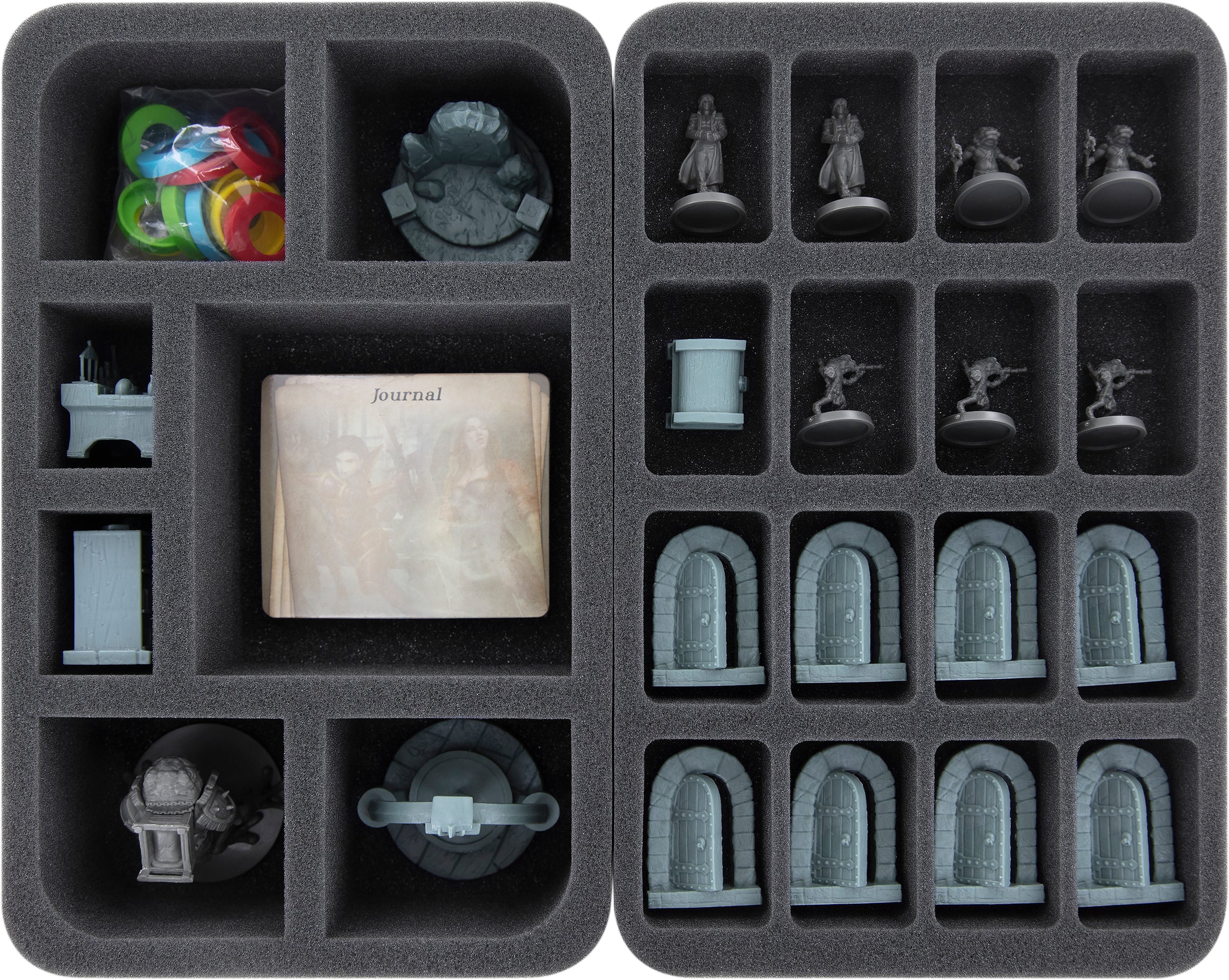 - 1 Full-Size foam tray with 13 compartments each for cards and tokens (FSLG050BO)