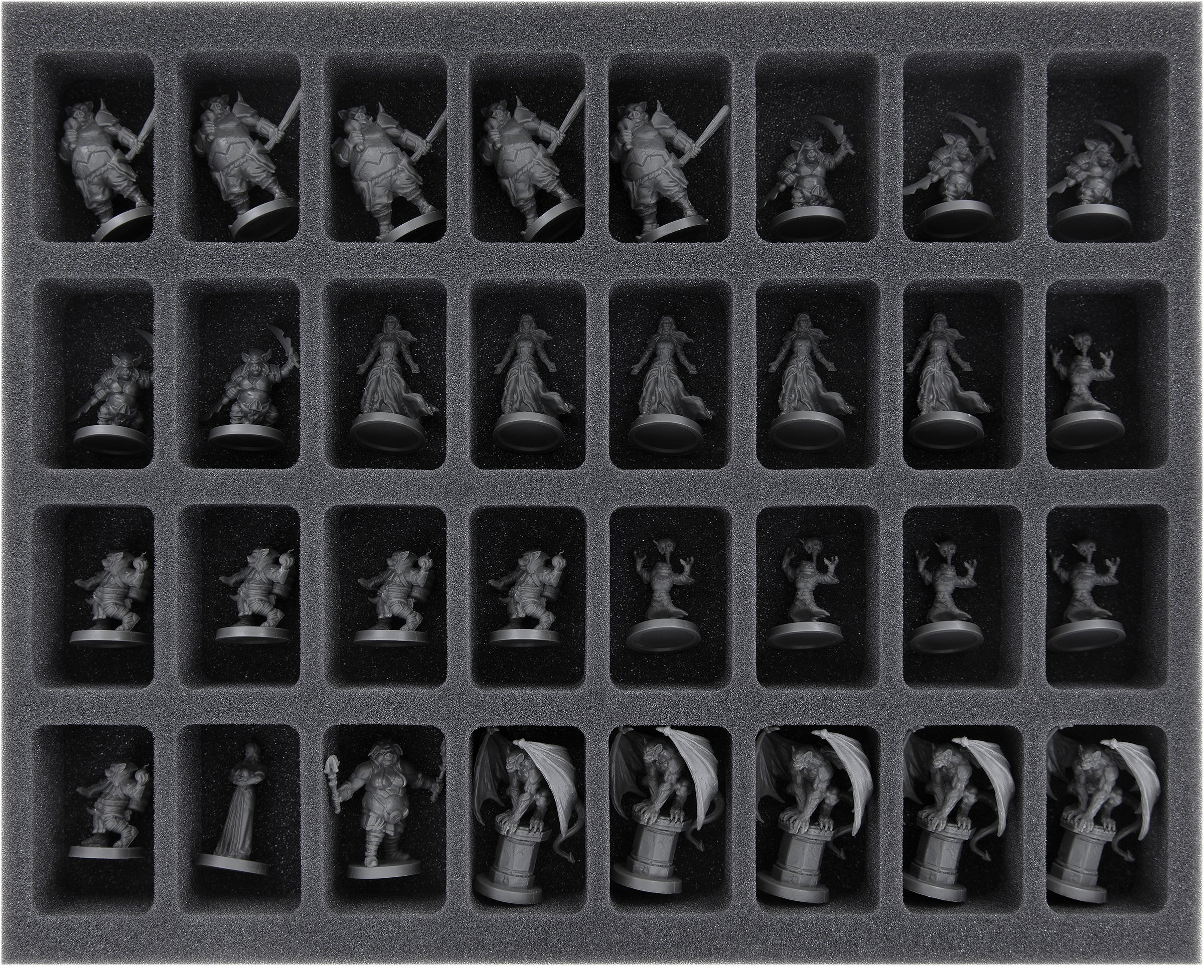 - 1 Full-Size foam tray with 32 compartments for miniatures (FSMEDS040BO)