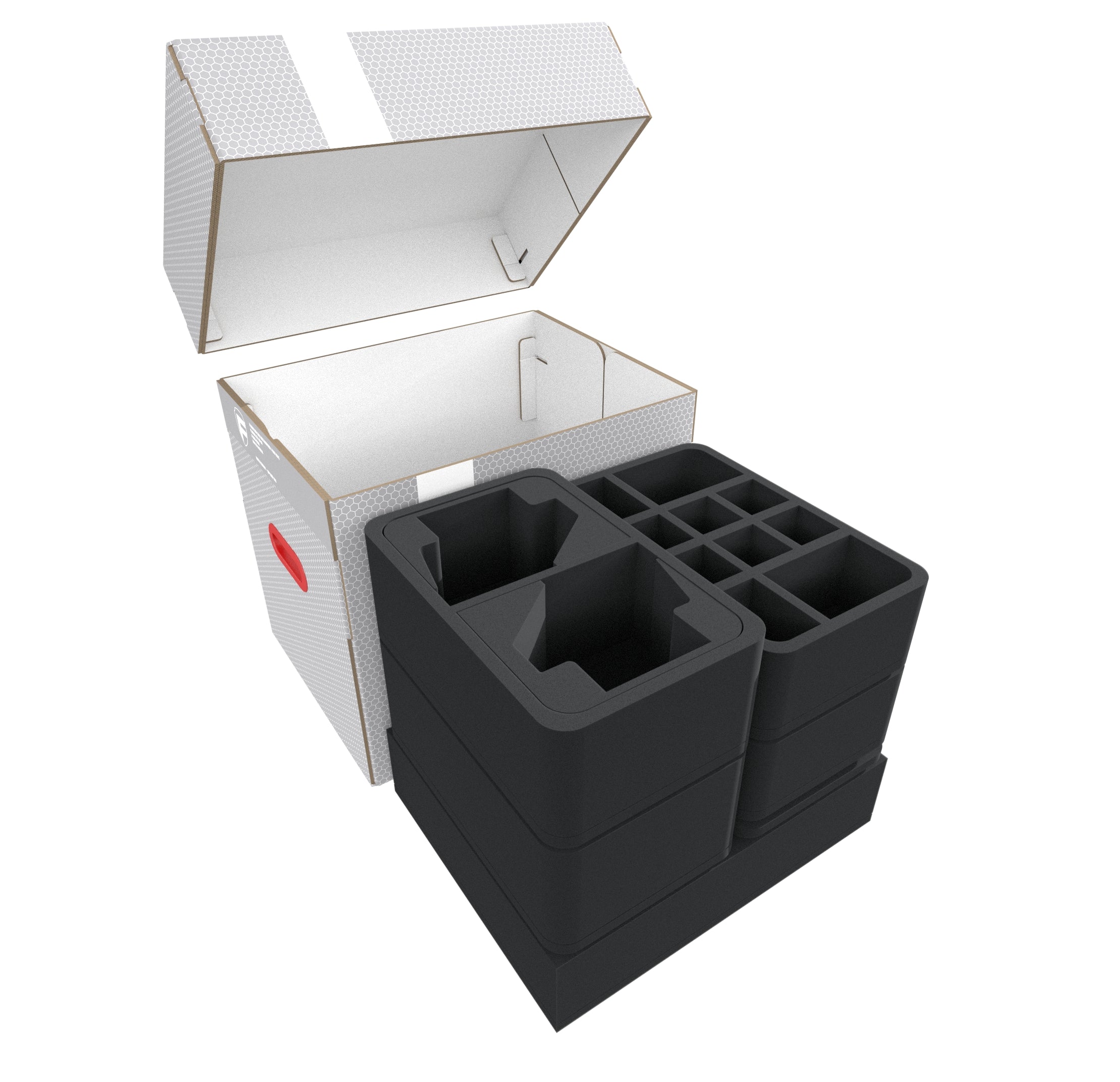 Custom-fit cut compartments reliably protect your miniatures from damage. The soft foam ensures that your painted units also arrive safely at the game table without scratches.