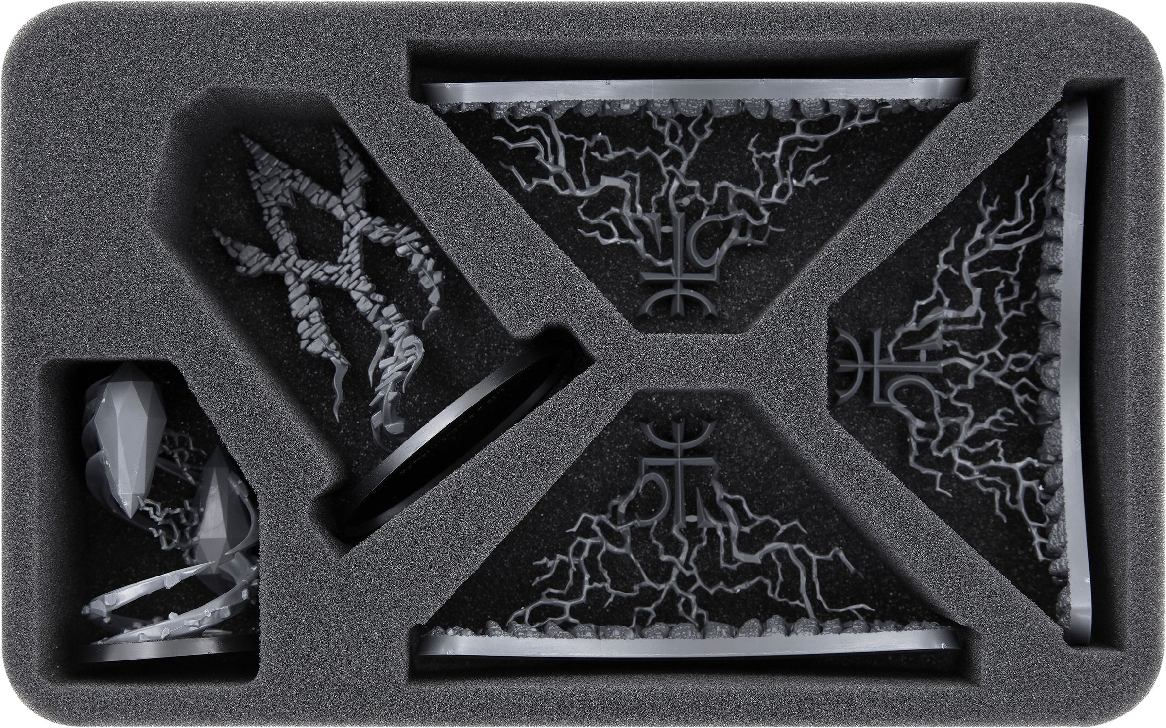 - 1 Half-Size foam tray with 6 compartments for e.g. The Light of Eltharion, Scinari Loreseeker, Scinari Cathallar (HSMFAJ070BO)