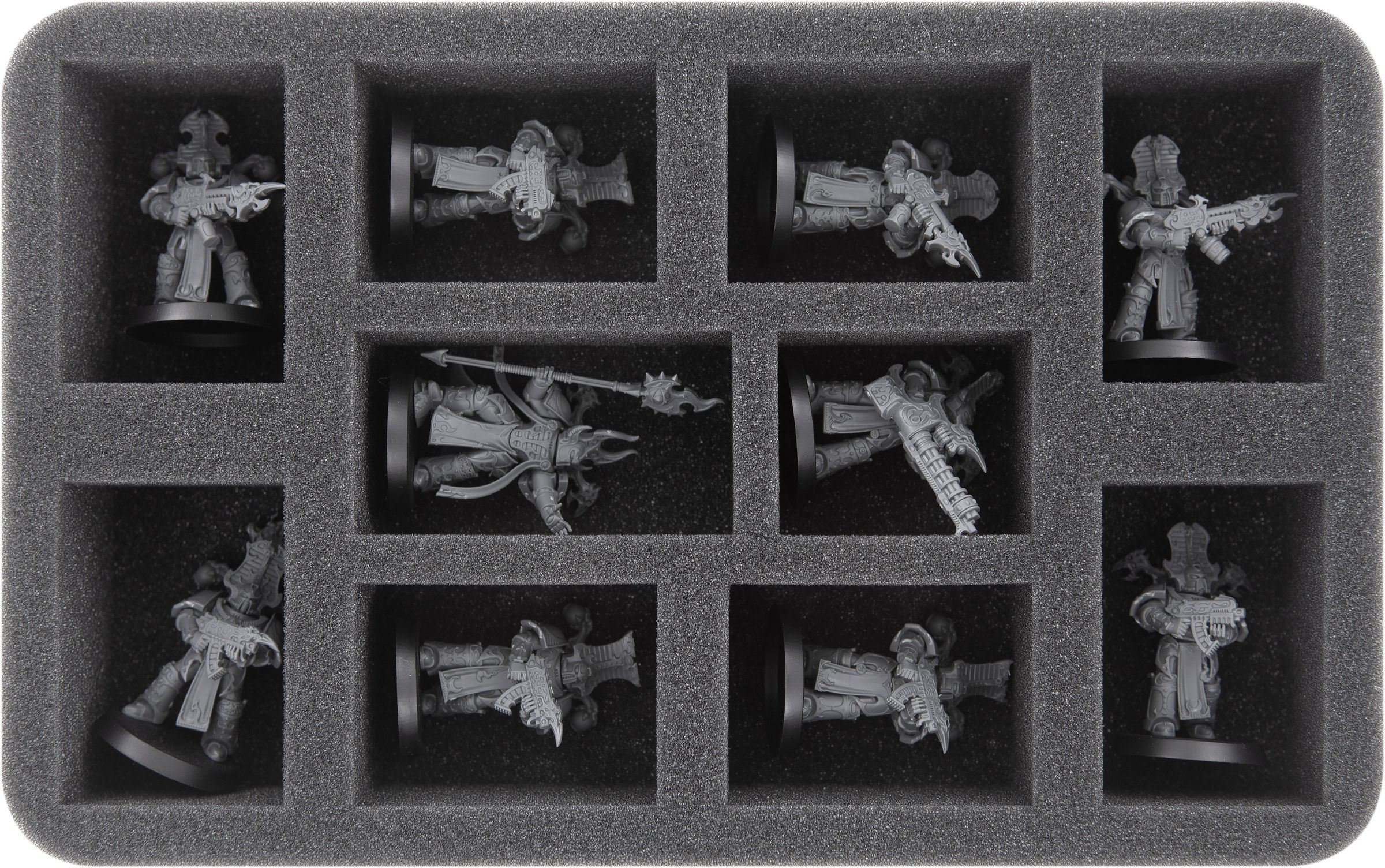 One additional foam tray with 32 compartments allows you to properly store standard-warrior-models on up to 32 mm bases, such as Rubric Marines.