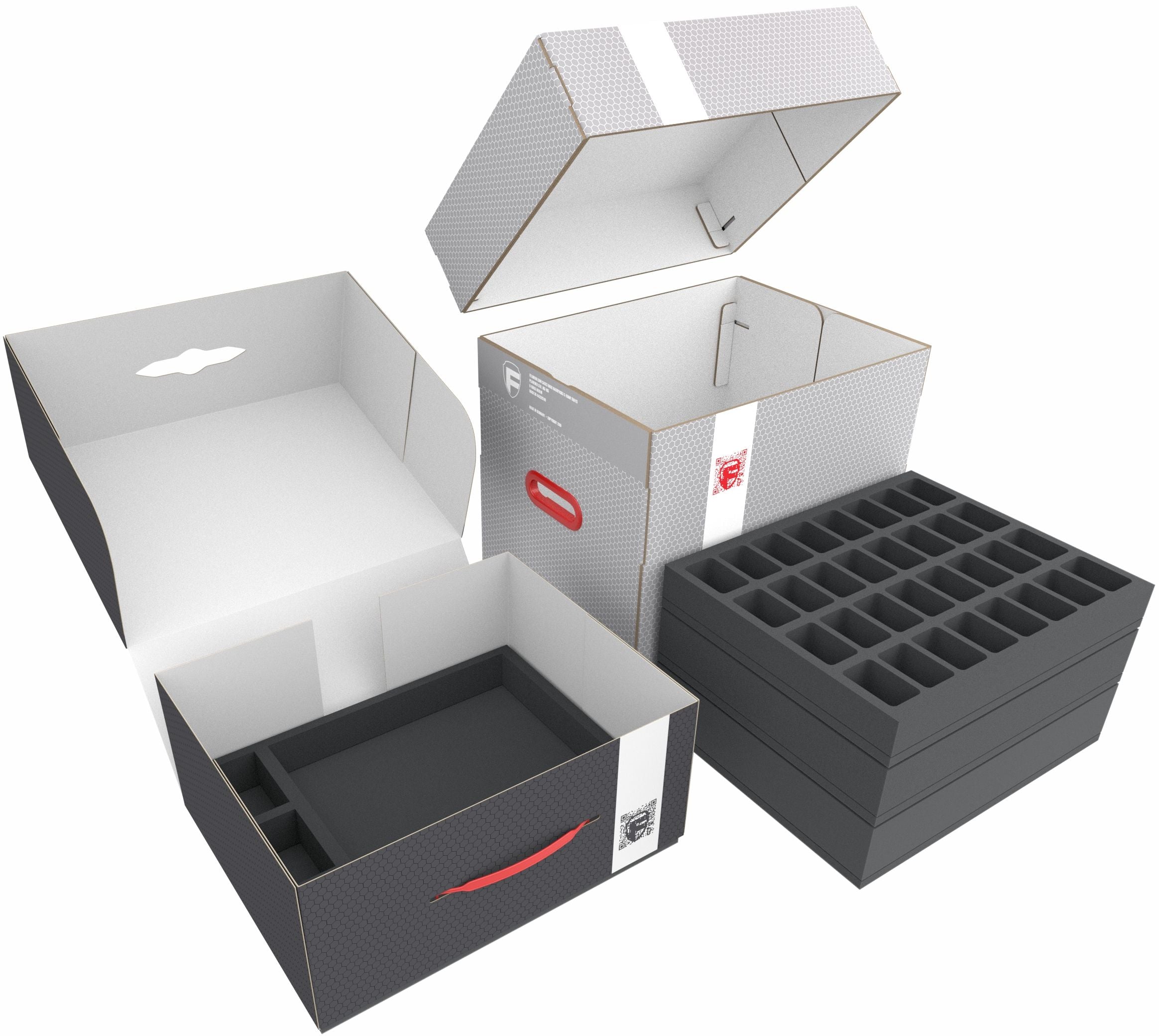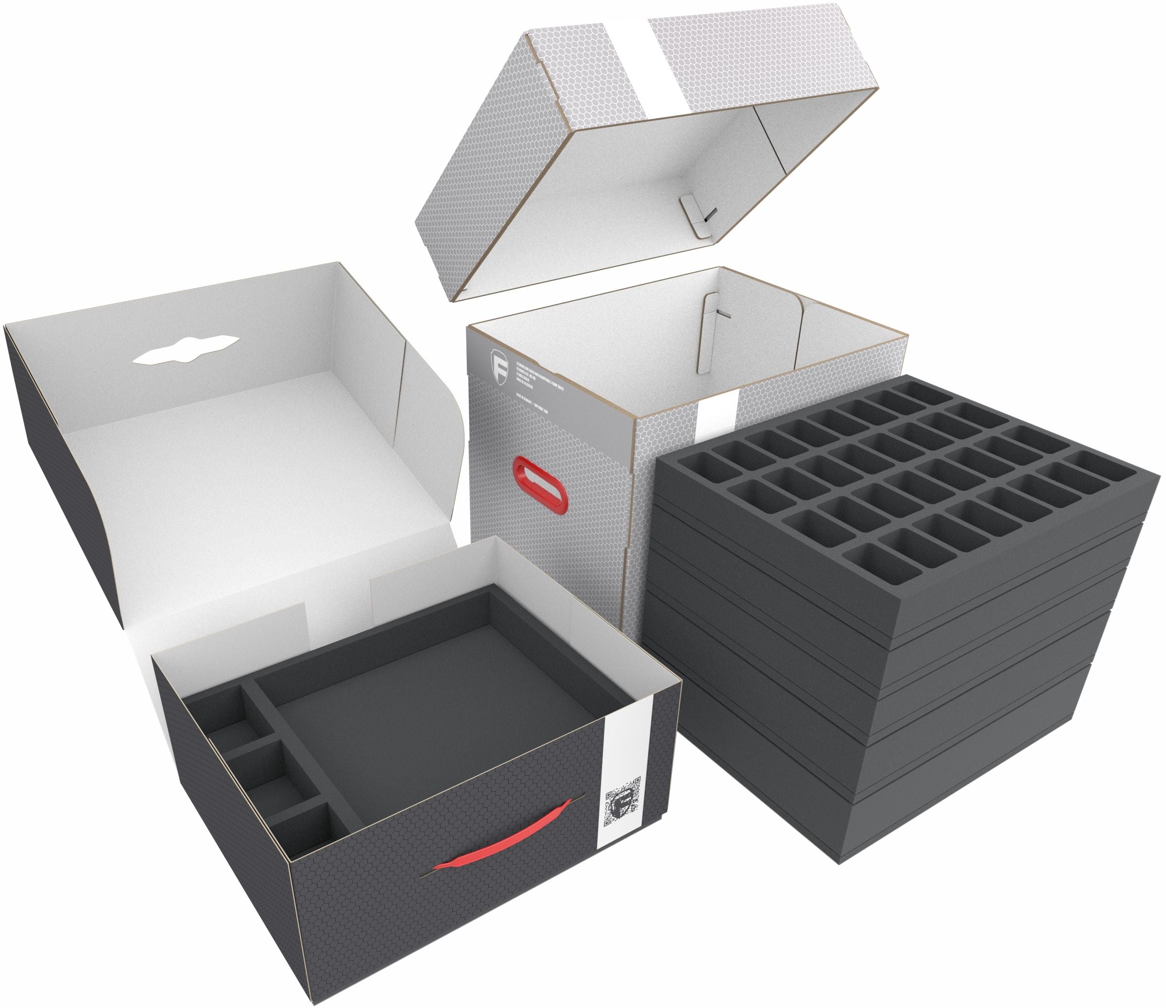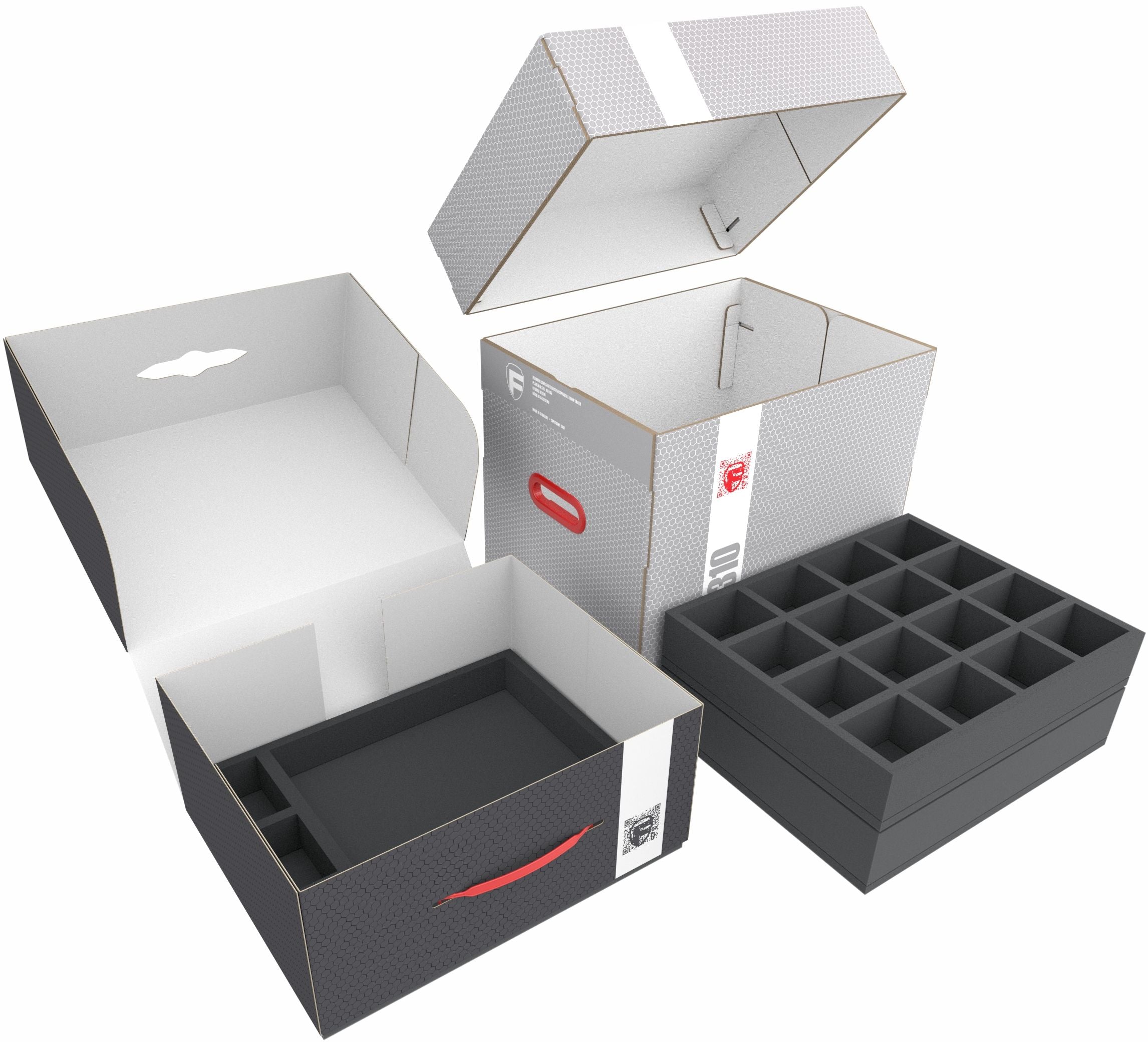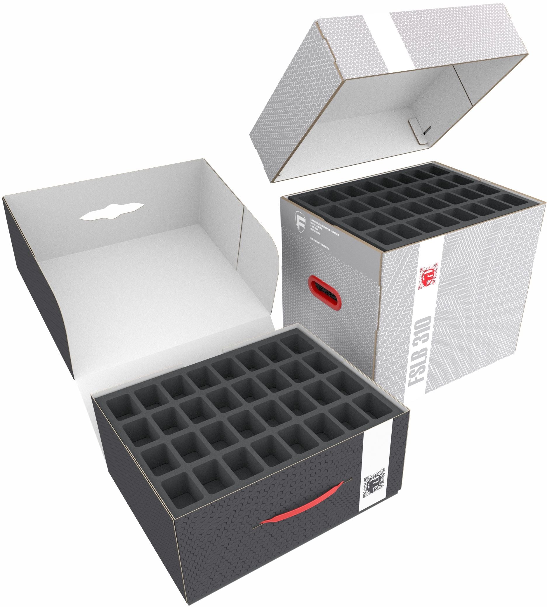 - Two sturdy storage boxes (FSLB310 and FSLB150) filled with custom-fit foam inserts for miniatures and game materials
