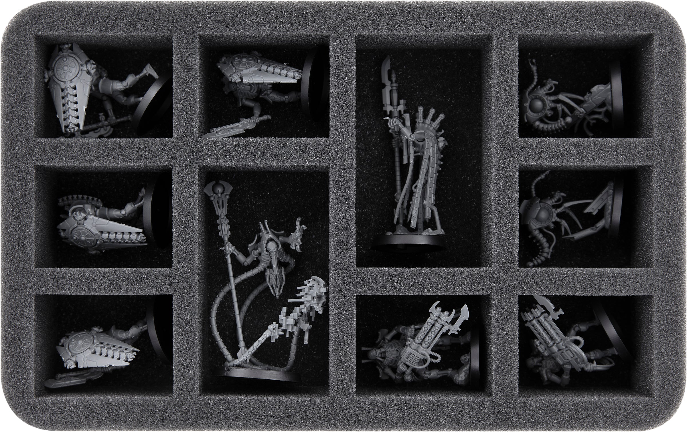 Custom-fit compartments of soft foam reliably protect your miniatures from damage and ensure that your painted units arrive safely at the tabletop without scratches.