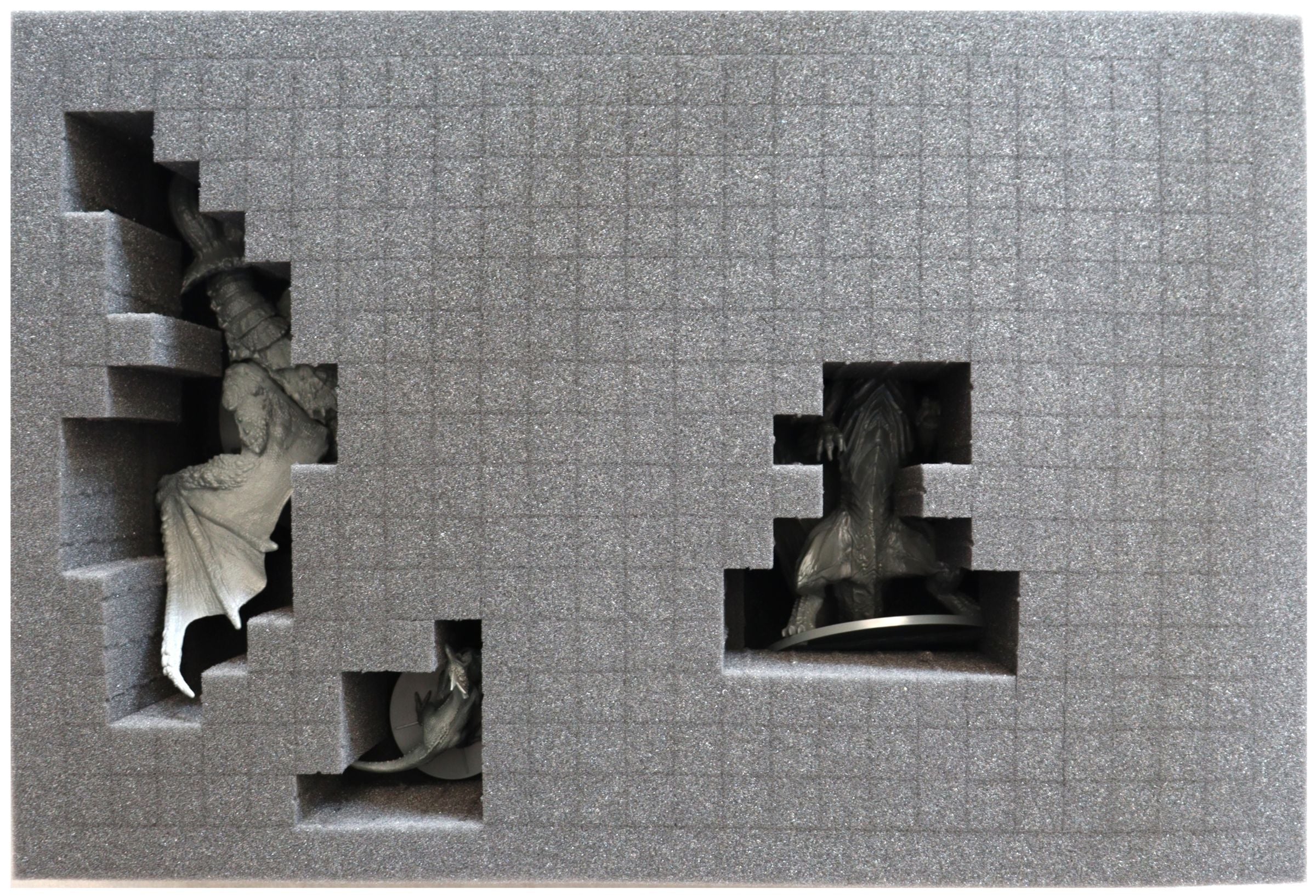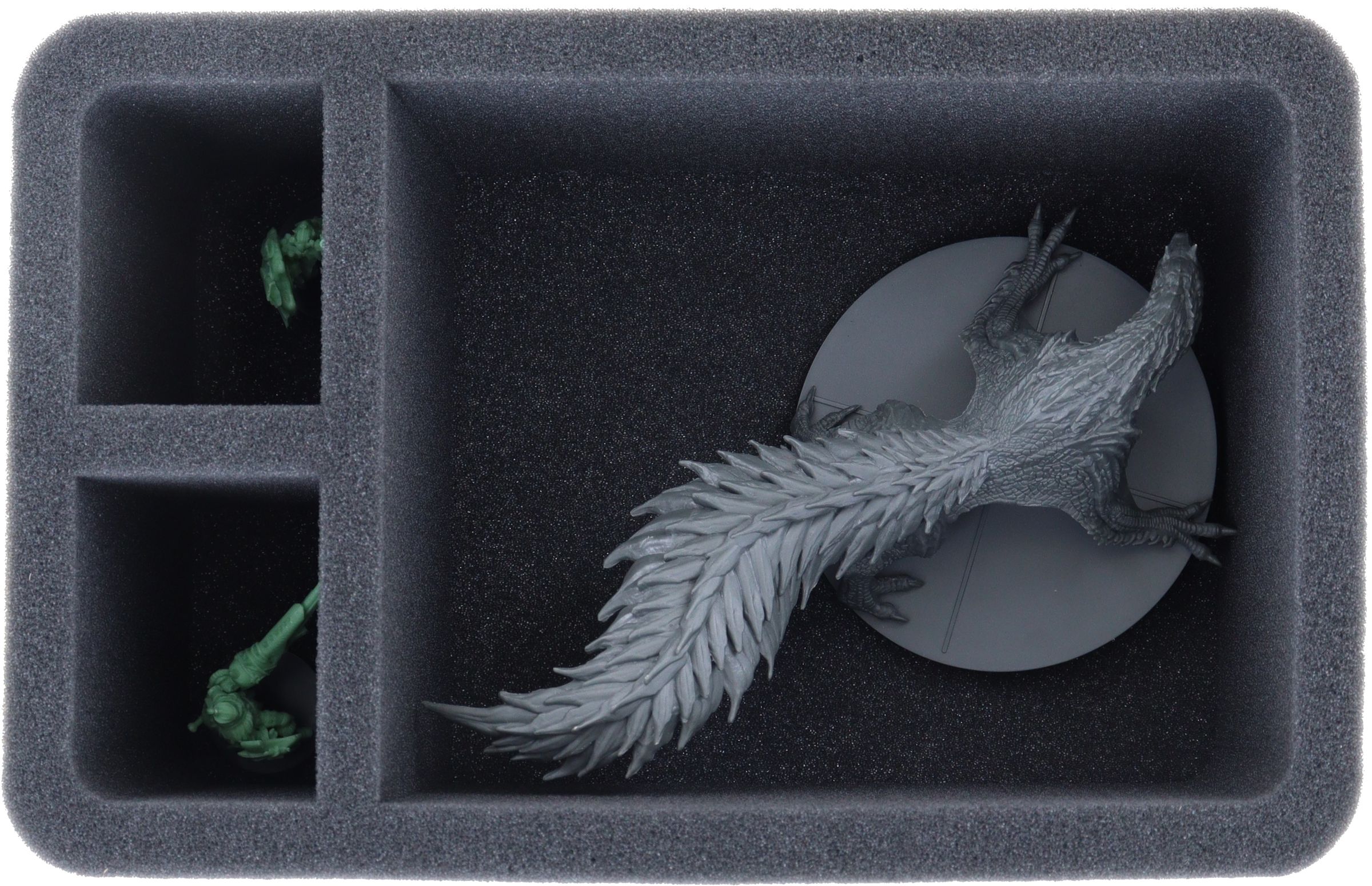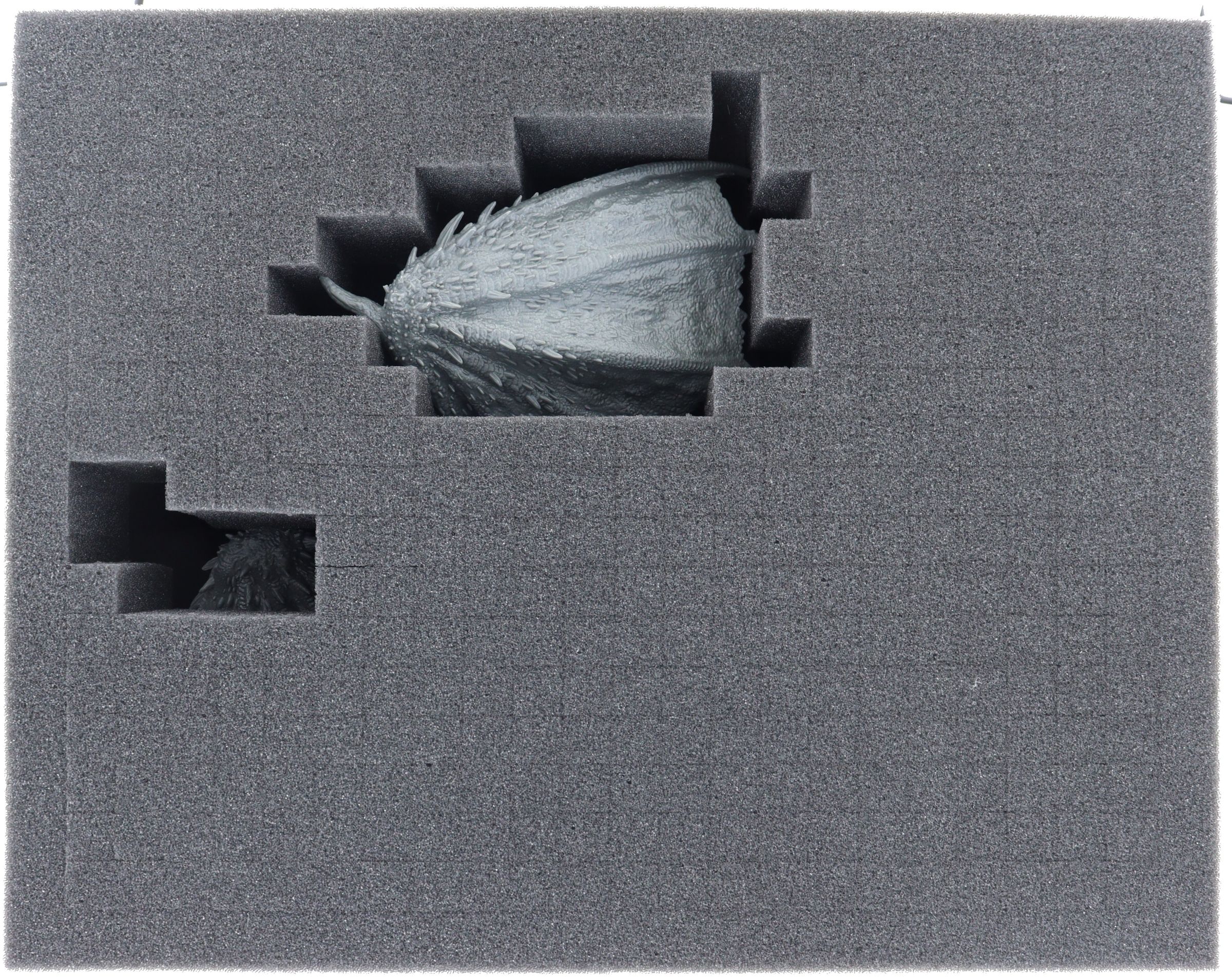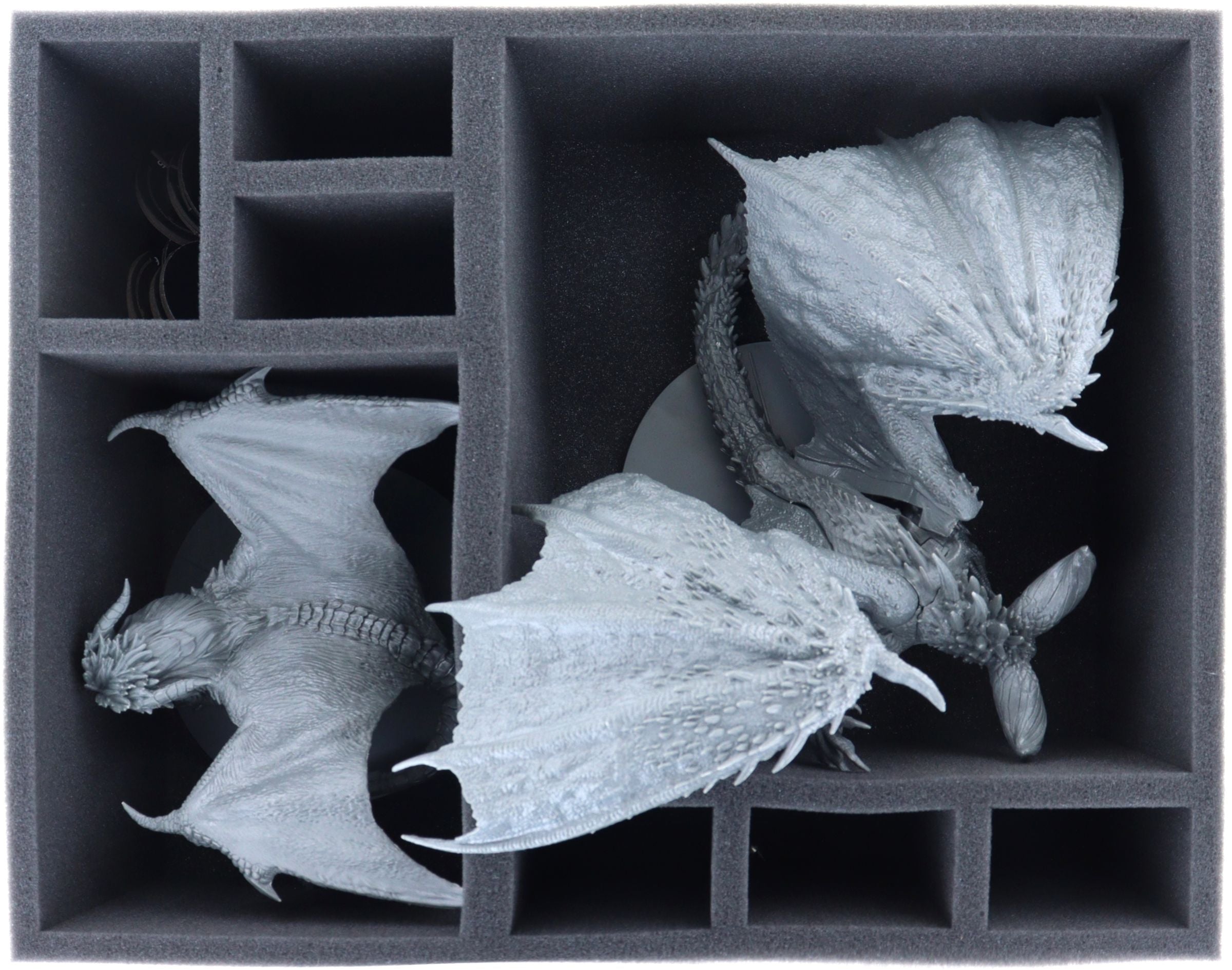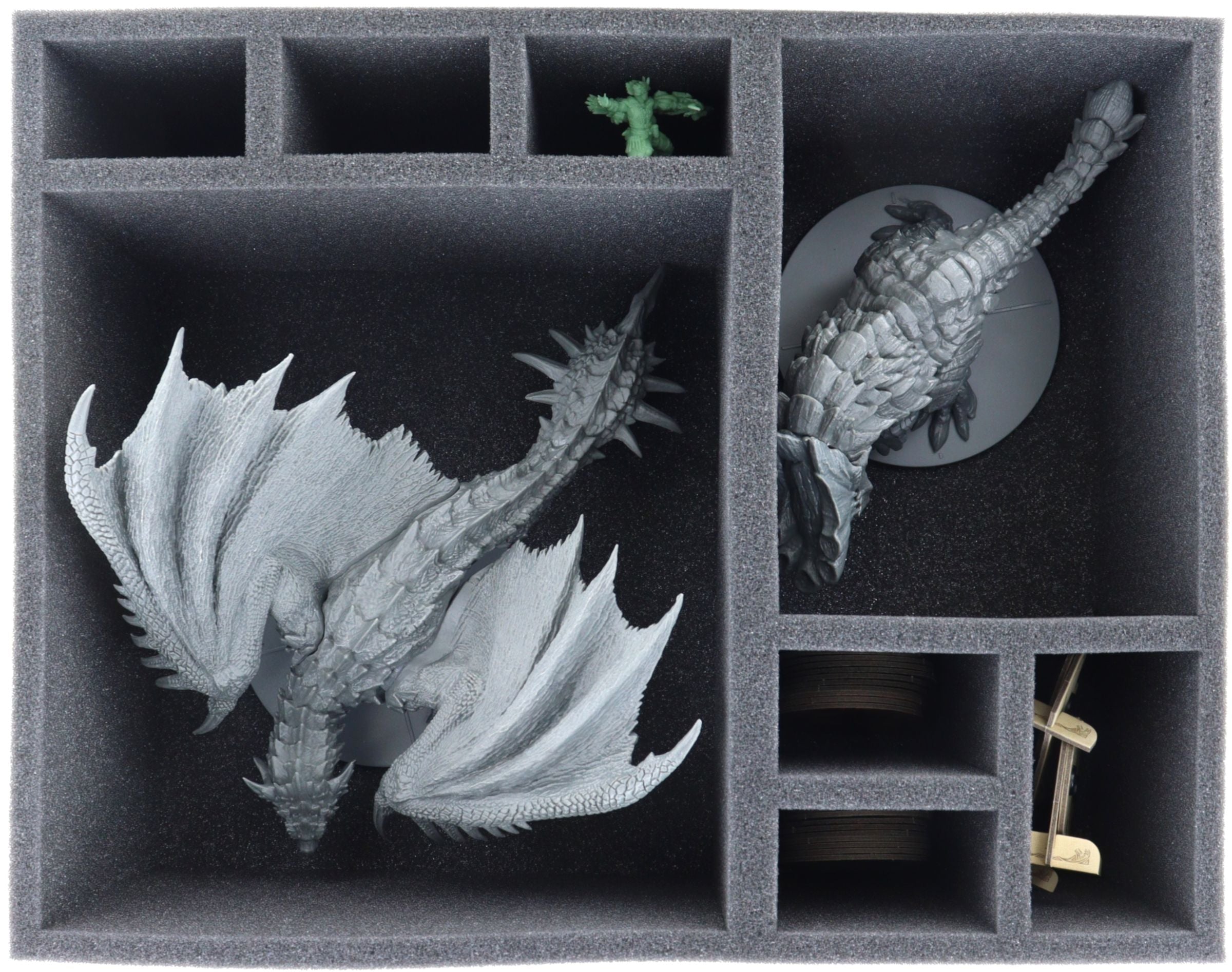 - 1 Full-Size foam tray with eight compartments for Elder Dragon Nergigante, Elder Dragon Teostra, Hunter Miniatures + Game materials like Health Dials, Terrain Tokens (FSMFGW120BO)