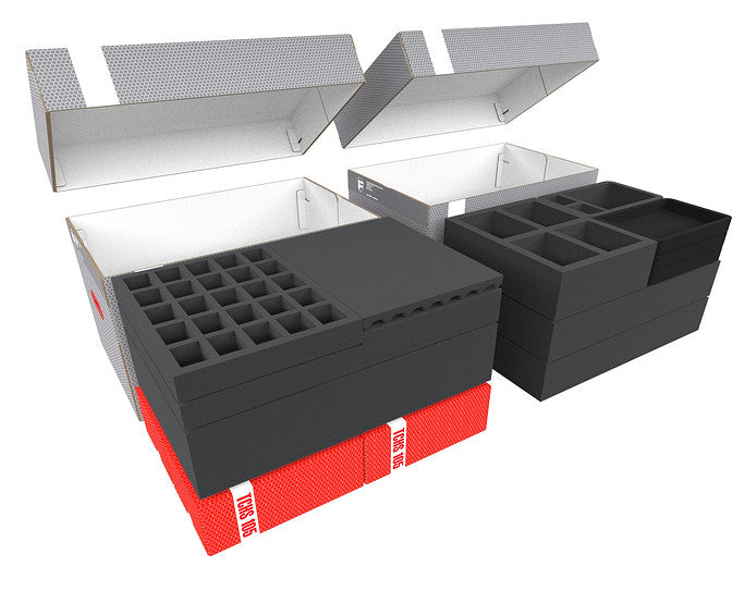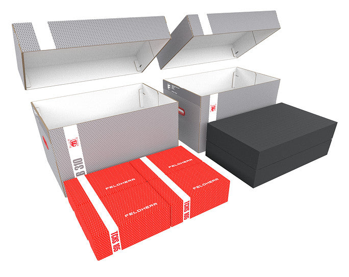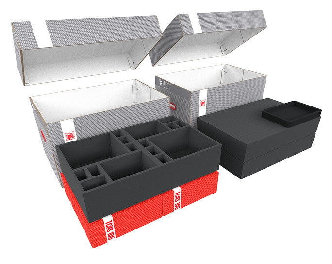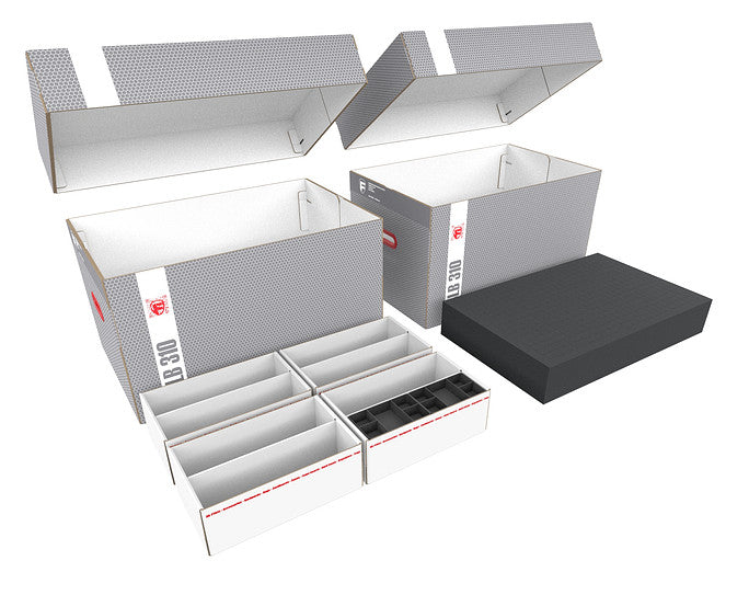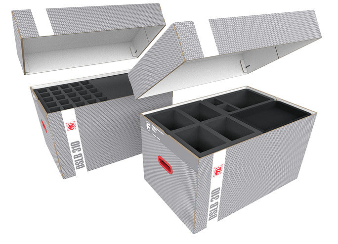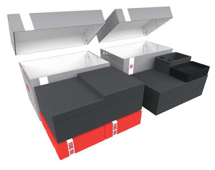 The Transporter Set comprises two spacious Storage Boxes DSLB310, high-quality Feldherr foam trays, and Pick and Pluck foam to ensure optimal protection for your models. Additionally, it includes TCHS105 storage boxes with token holders to keep your game materials neatly organized. With this set, you can conveniently transport your figures while keeping your game materials in perfect order.