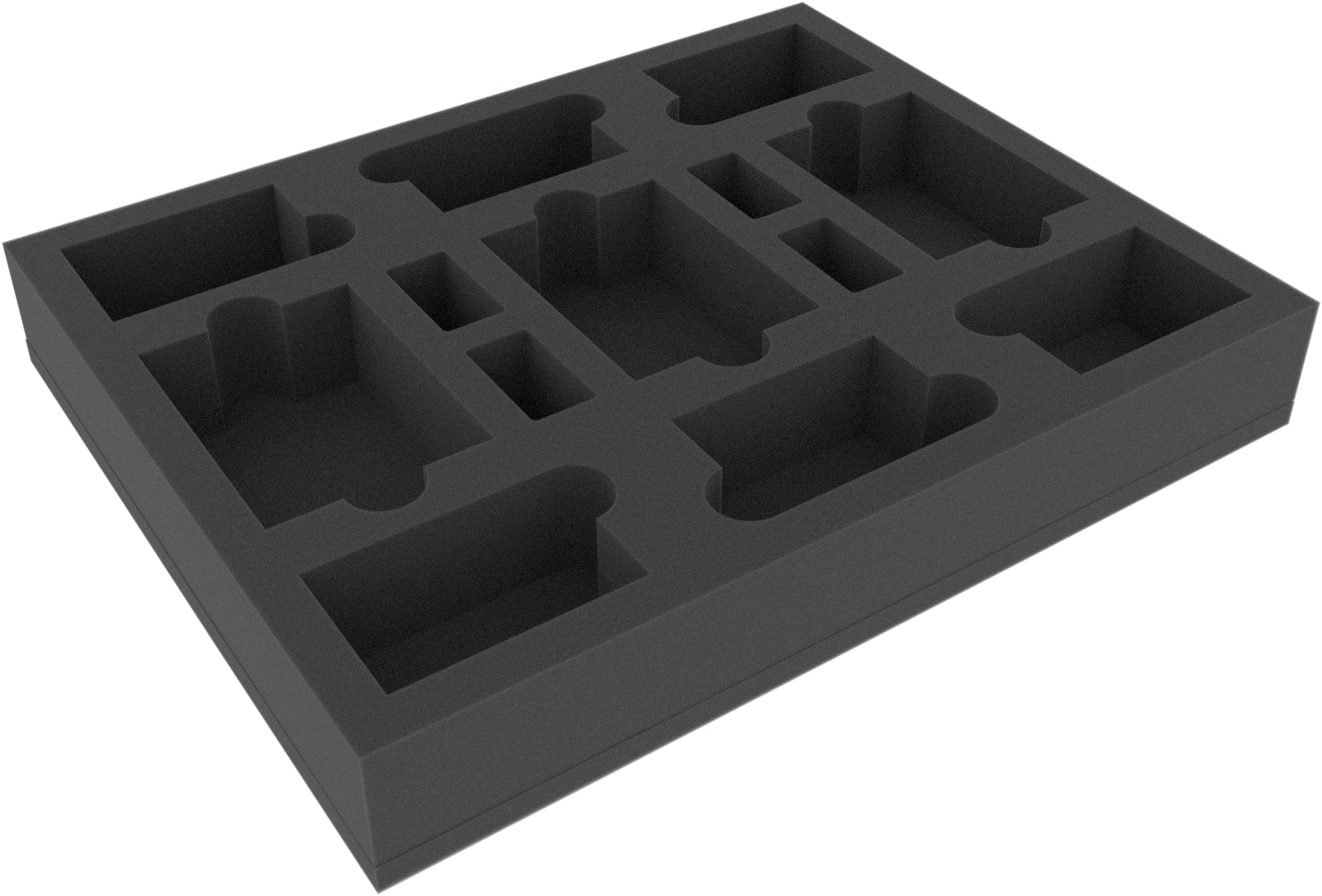 The Full-Size foam tray has the dimensions: 345 mm x 275 mm x 50 mm total height (40 mm usable height + 10 mm foam base).