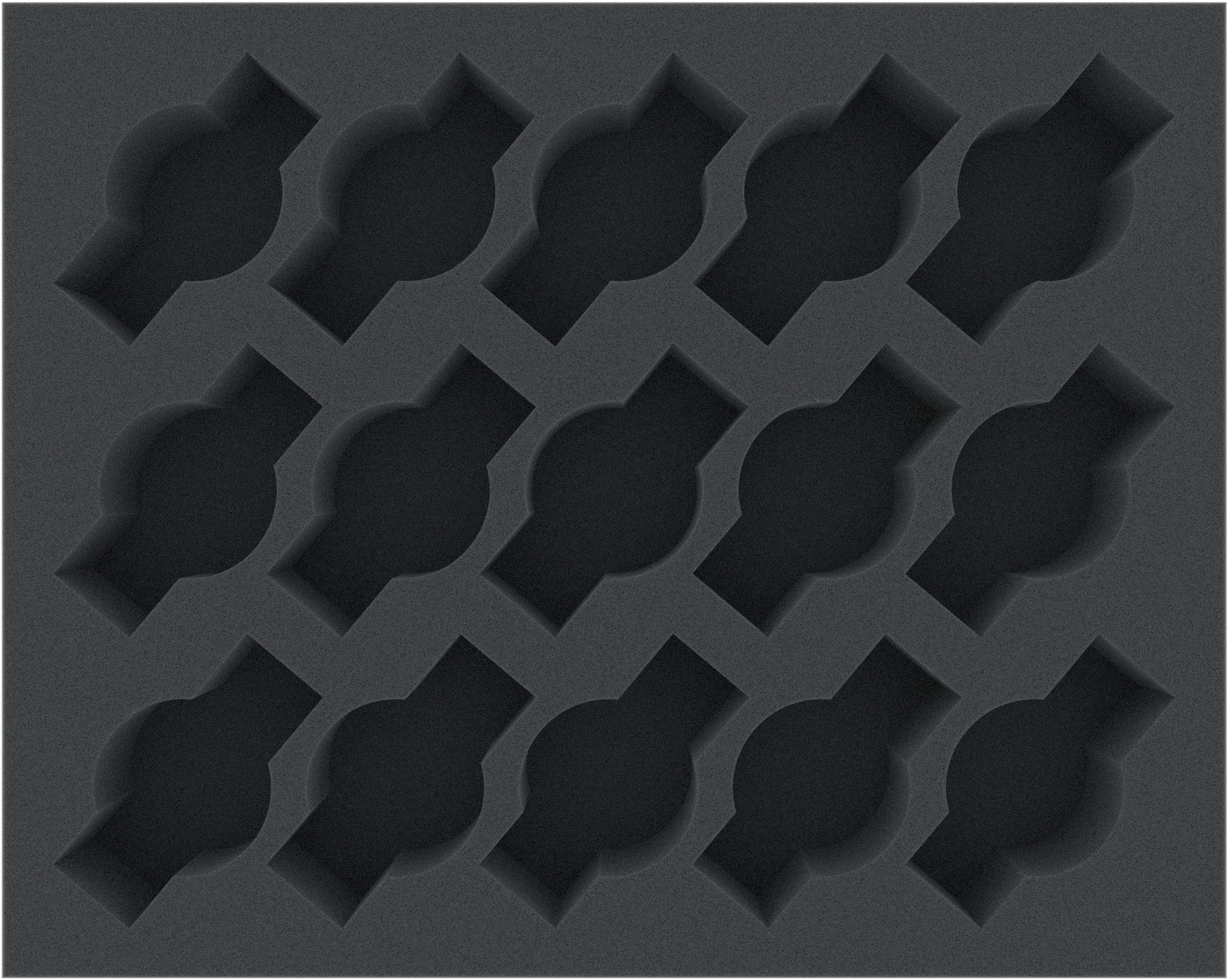 - The 15 compartments have the dimensions: 50 mm x 85 mm x 40 mm. The round compartments have a diameter of 50 mm. The rectangle has the base area of approx. 85 mm x 28 mm.