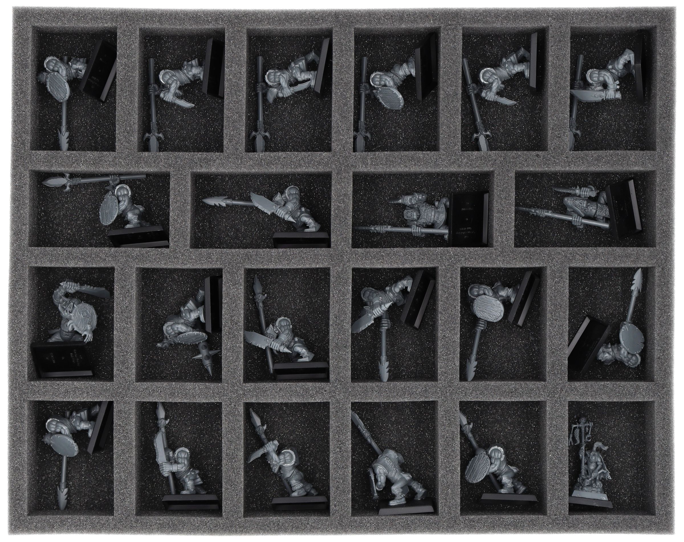The Feldherr Full-Size foam tray provides space for up to 22 miniatures of your army. Ideal for standard miniatures of Orcs and Goblins.