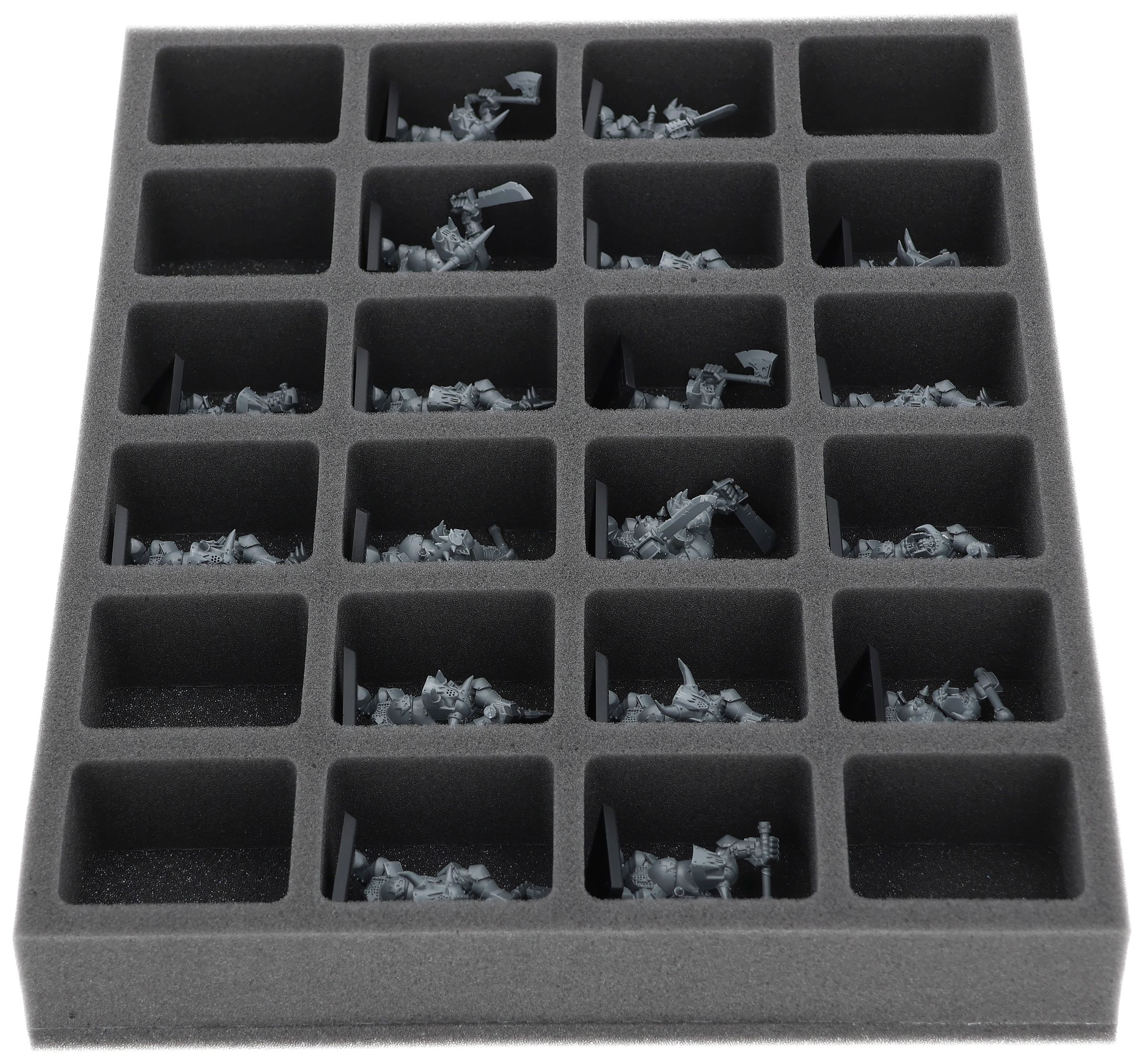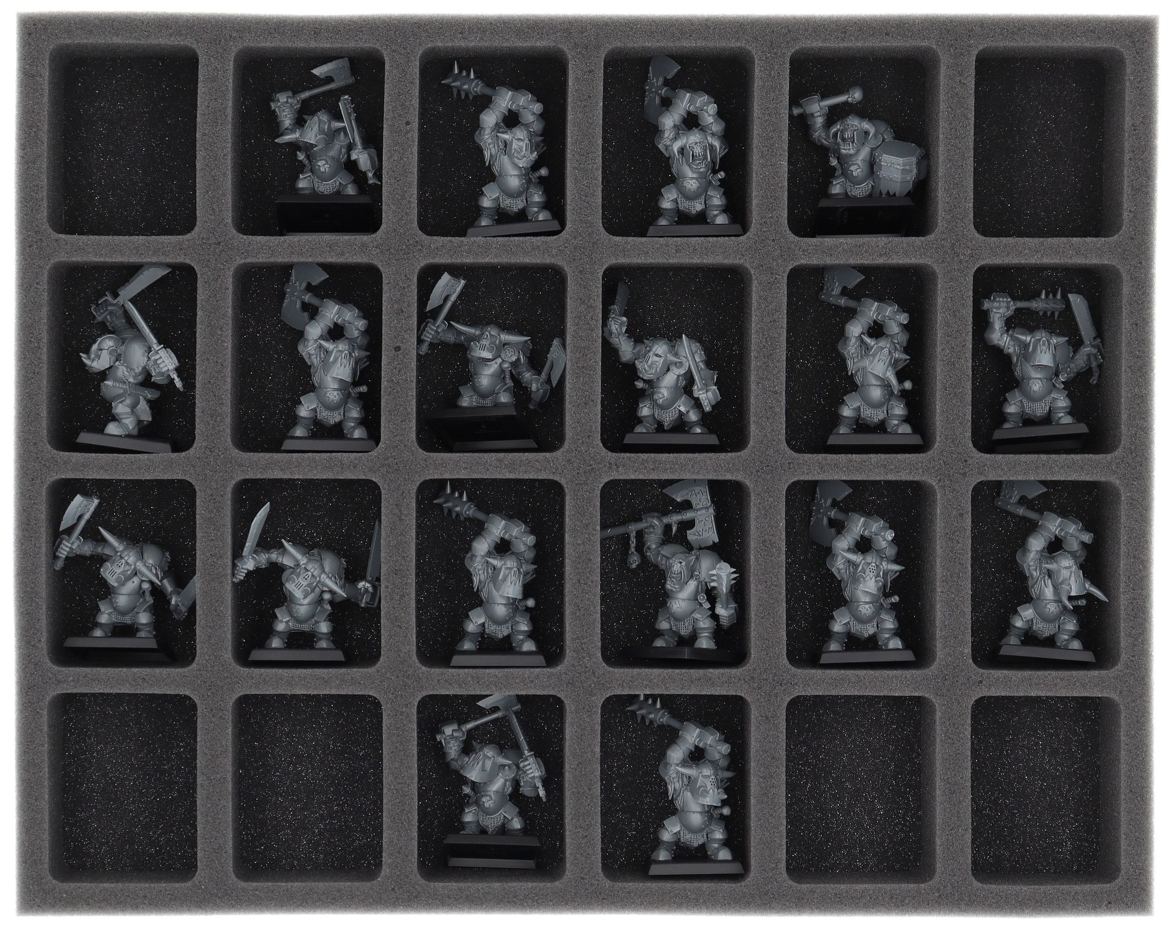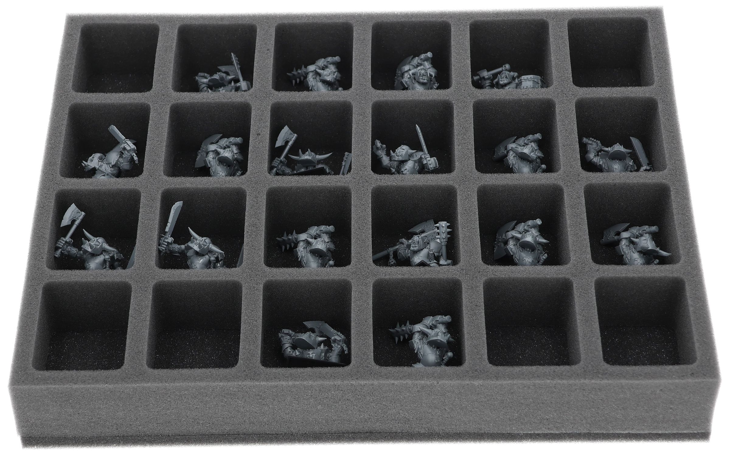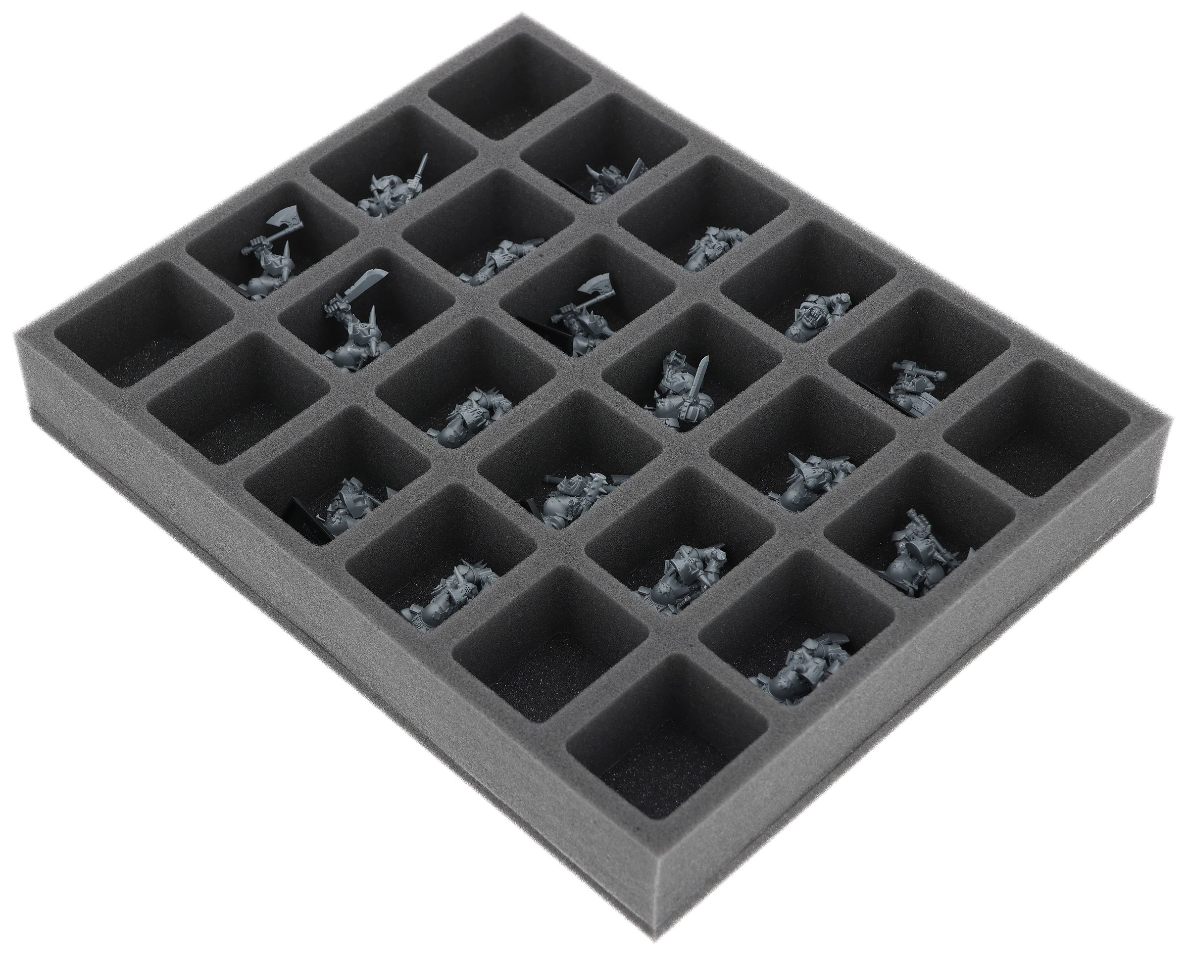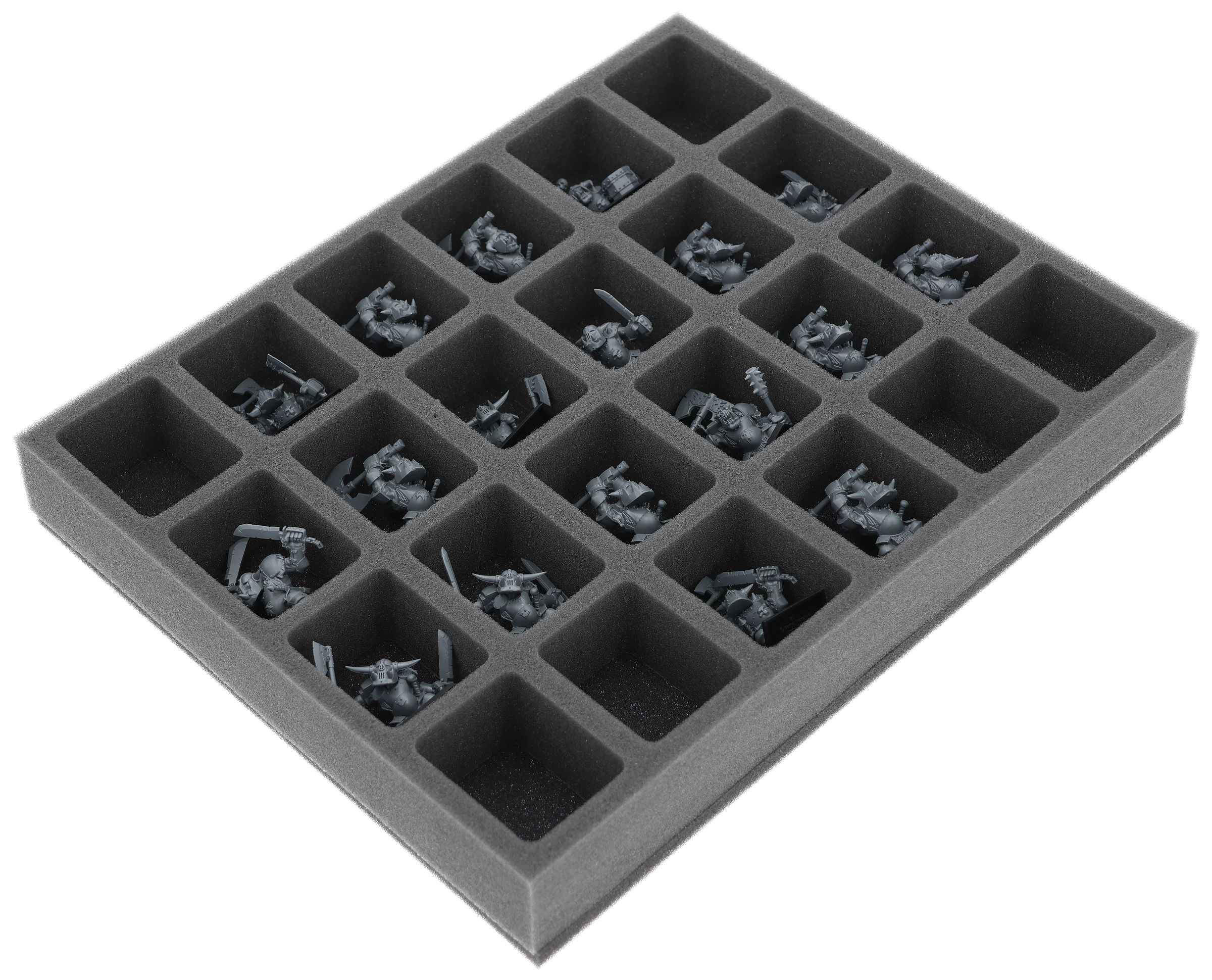 On this Feldherr foam tray you have space for up to 24 miniatures of your army. The insert is especially suitable for storing the Orc Boyz Mob and similar sized models.