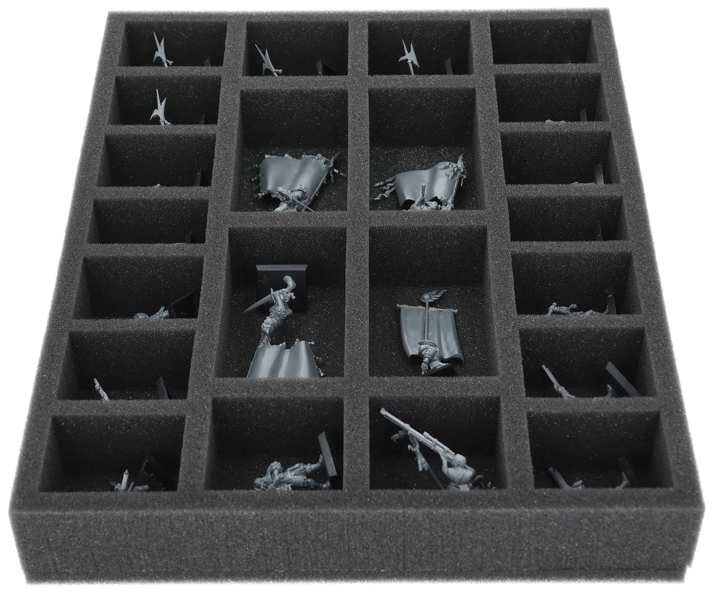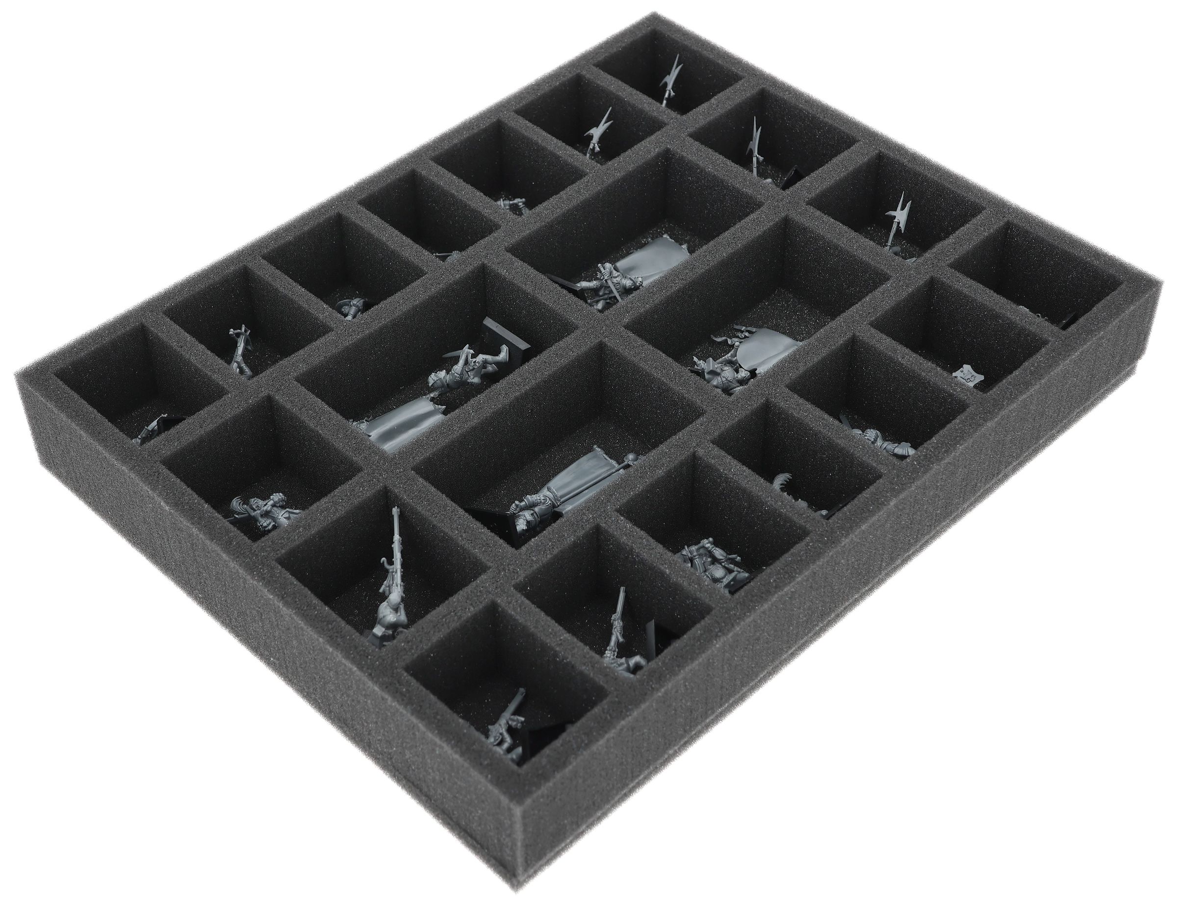 On this Feldherr foam tray you have space for up to 22 miniatures of your army. The insert is especially suitable for storing the State Missile Troops, Empire State Troops, Empire Greatswords and similar sized models.
