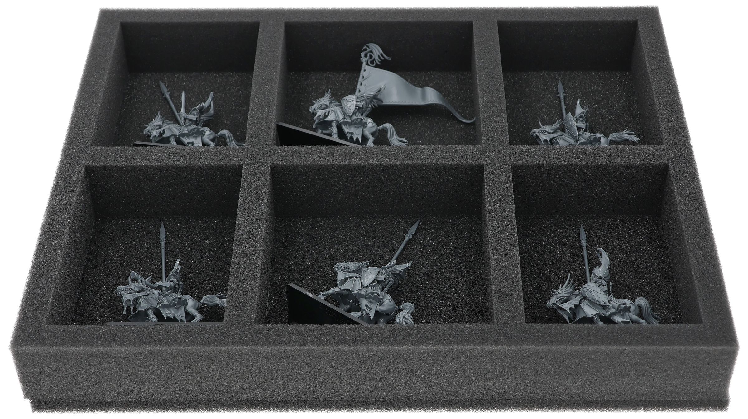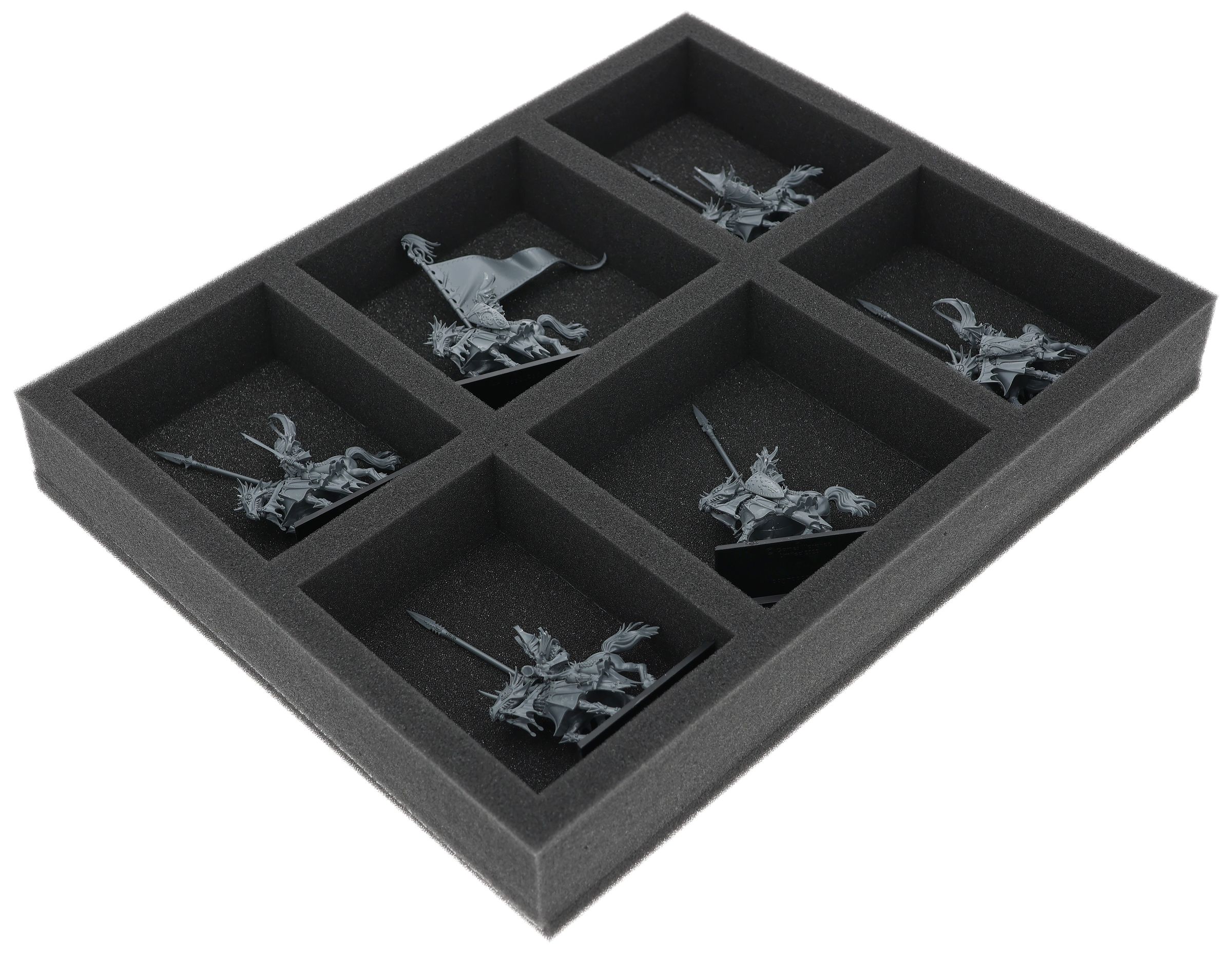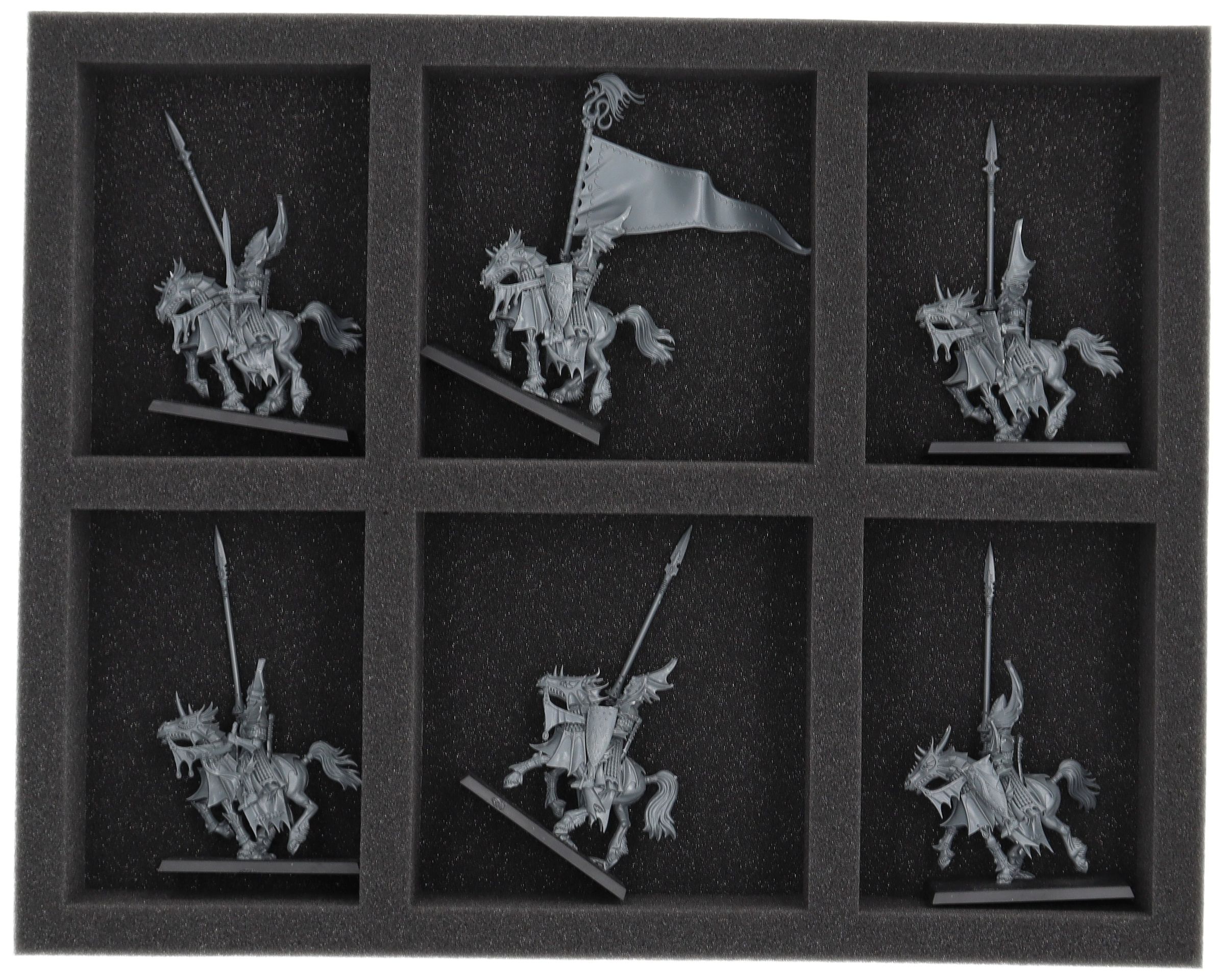 On this Feldherr foam tray you have space for up to 6 miniatures of your army. The insert is especially suitable for storing the Dragon Princes of Caledor,Silver Helms and similar sized models.