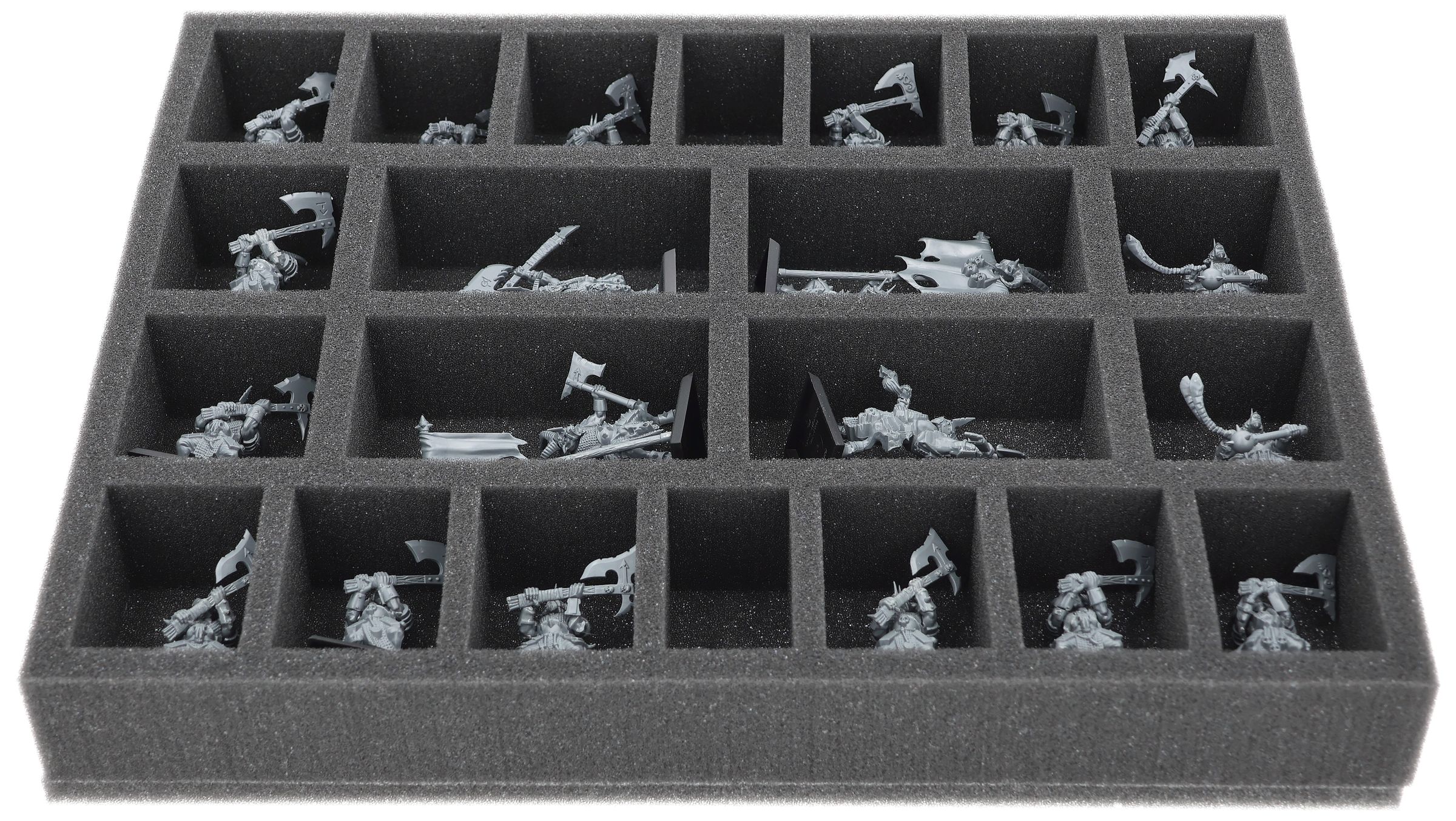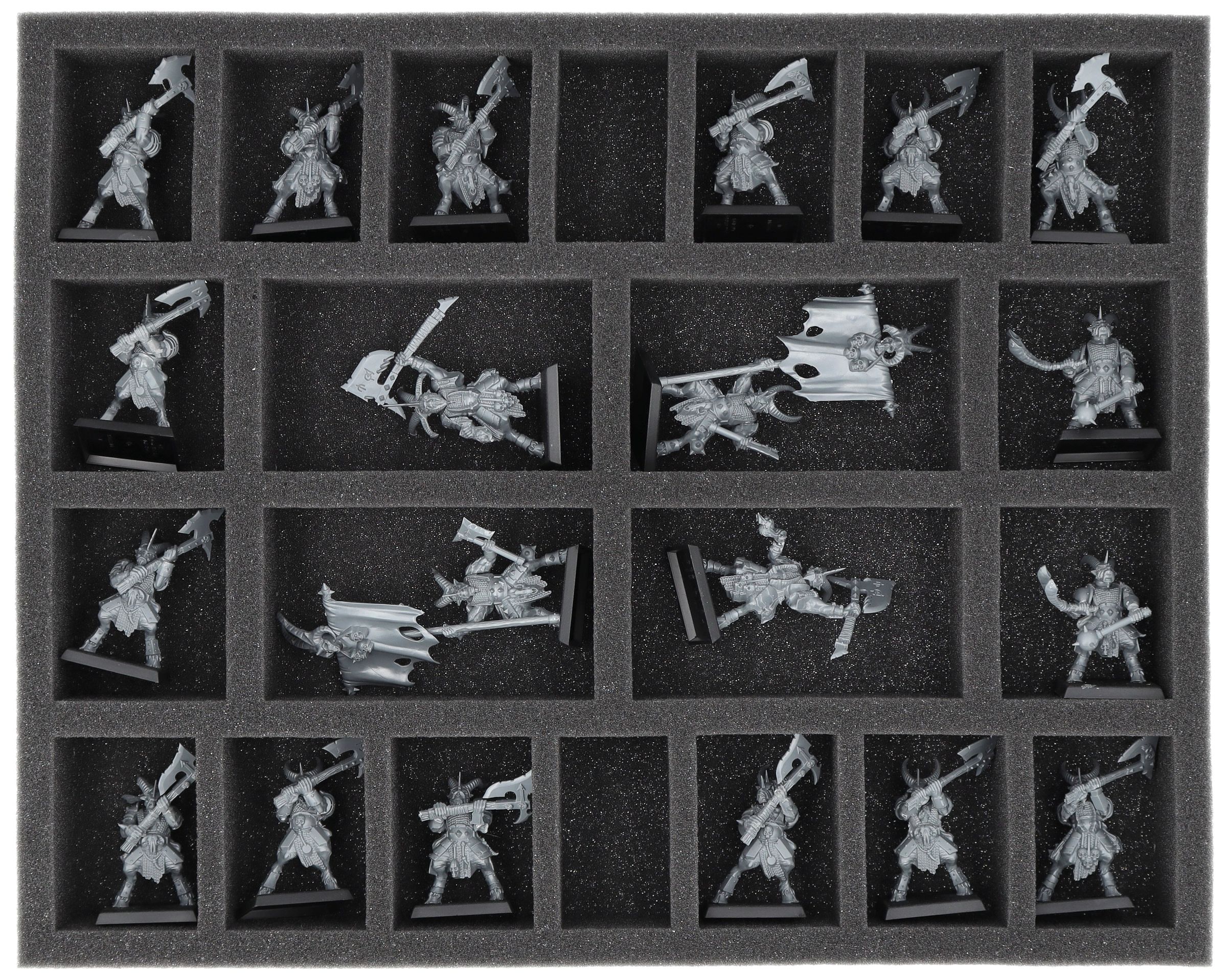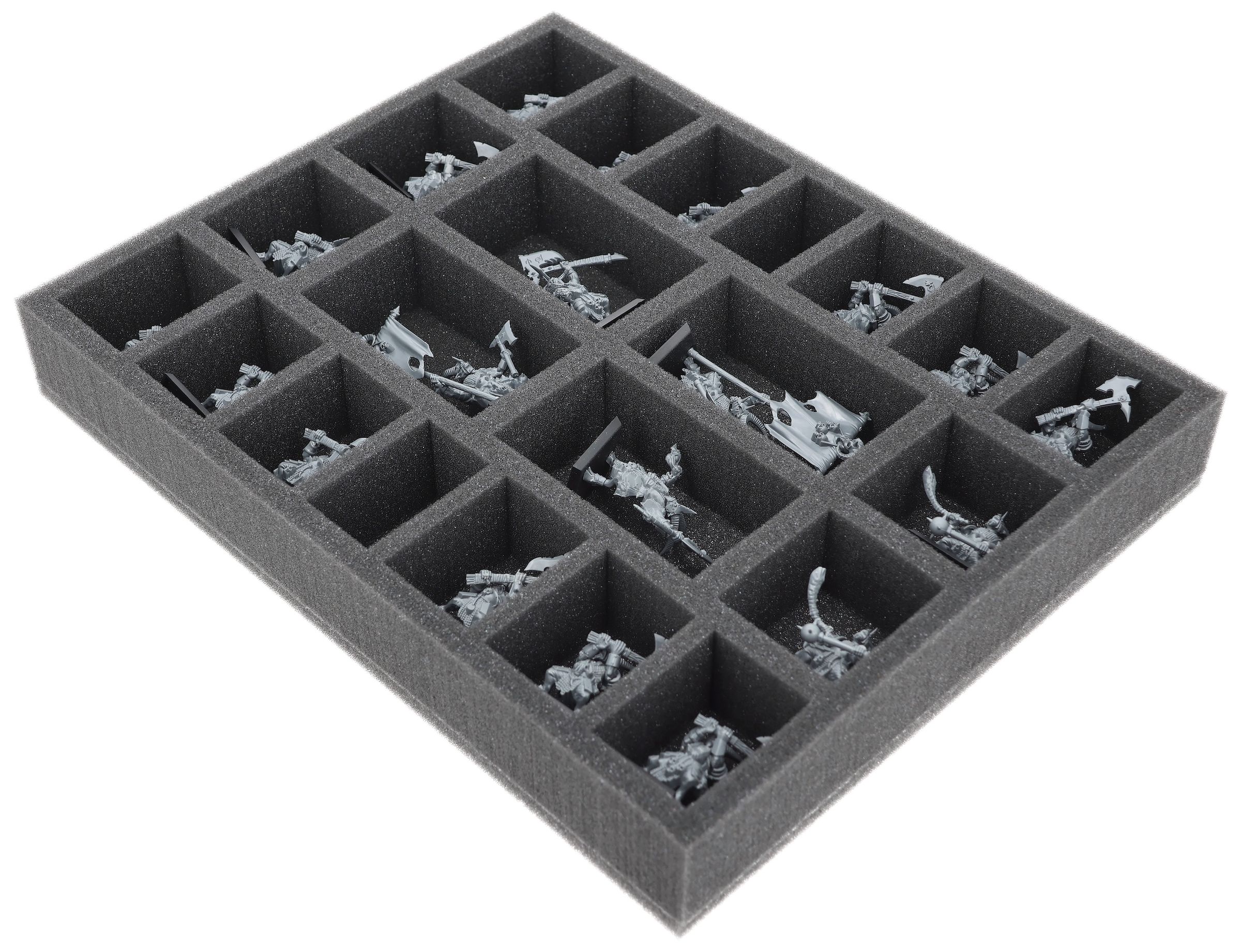 On this Feldherr foam tray you have space for up to 22 miniatures of your army. The insert is especially suitable for storing the Gor Herd, Bestigor Herd and similar sized models.