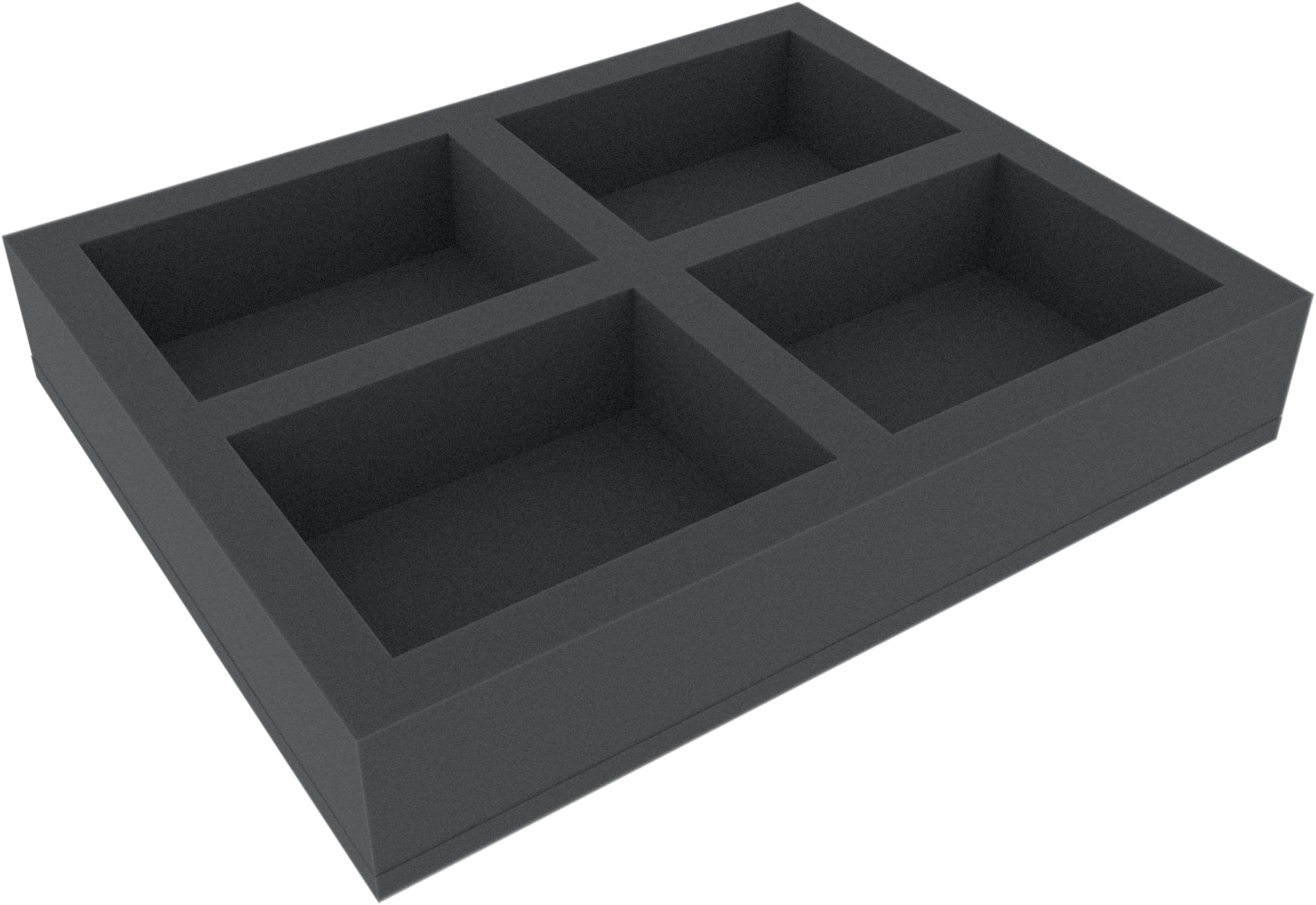 This Full-Size foam tray is divided into 4 compartments. The four compartments of equal size are ideal to safely store larger figures, such as vehicles, monsters or character models, from various board games and tabletop systems.